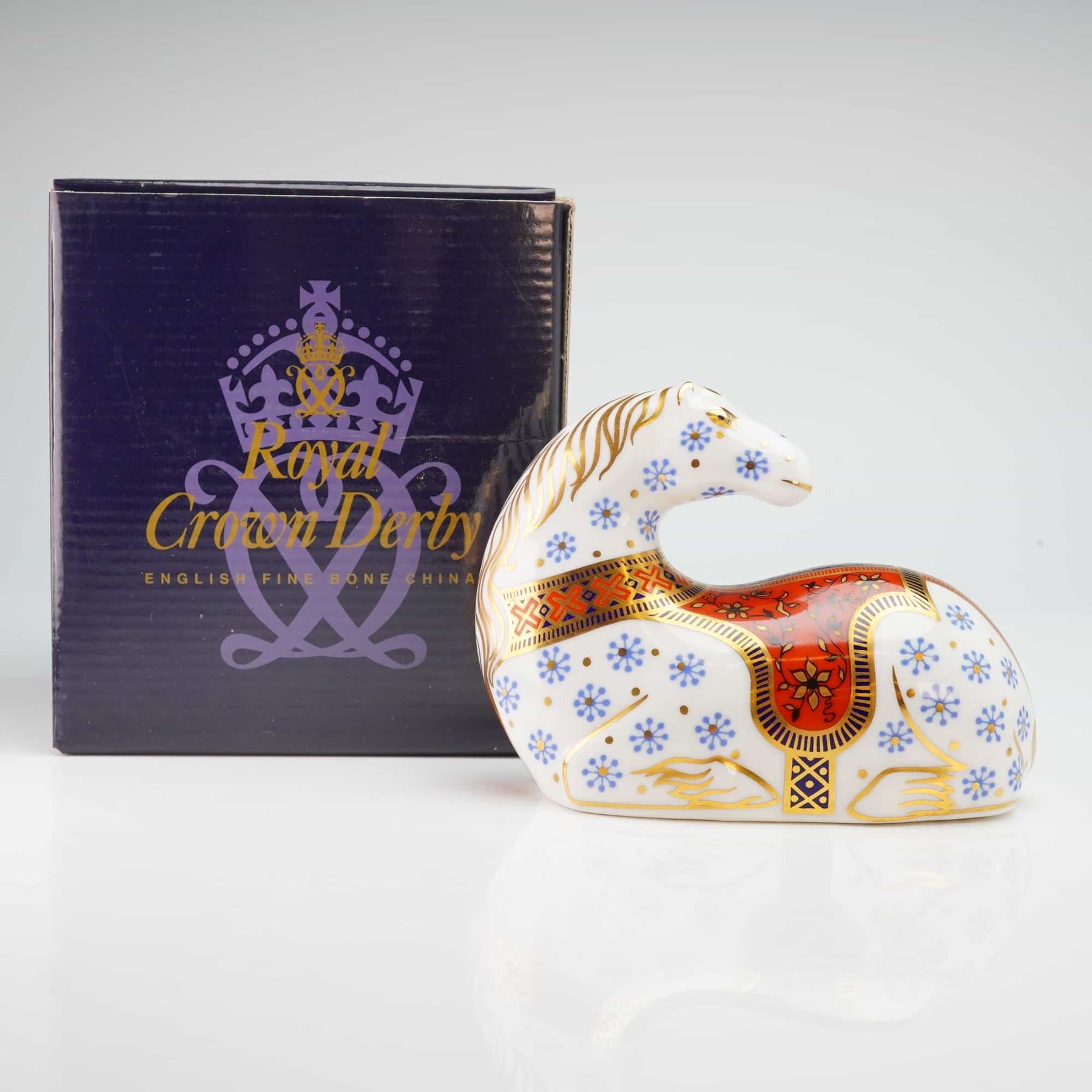 Lot 263 Royal Crown Derby Paperweight, Imari Horse with Box