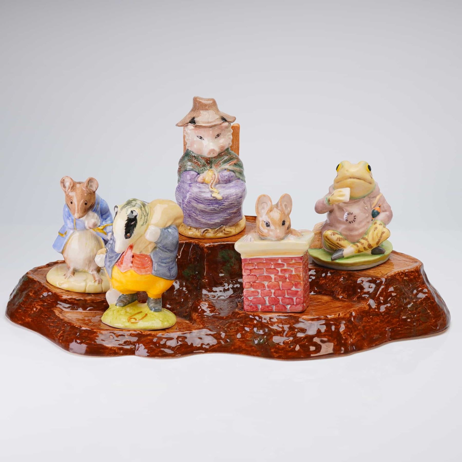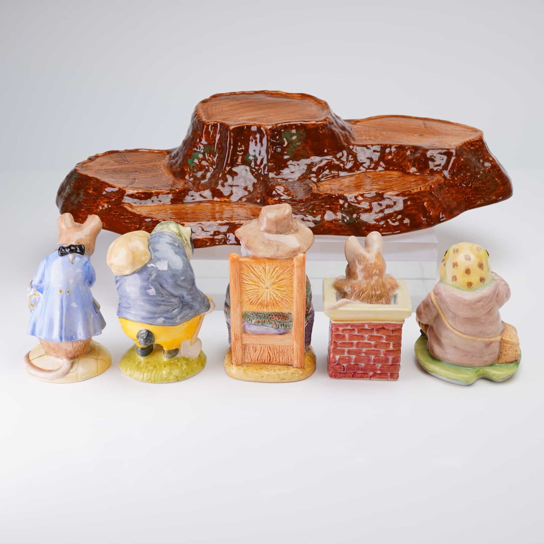 Lot 275 6pc Beswick Beatrix Potter Figurines and Tree Stump Display Stand