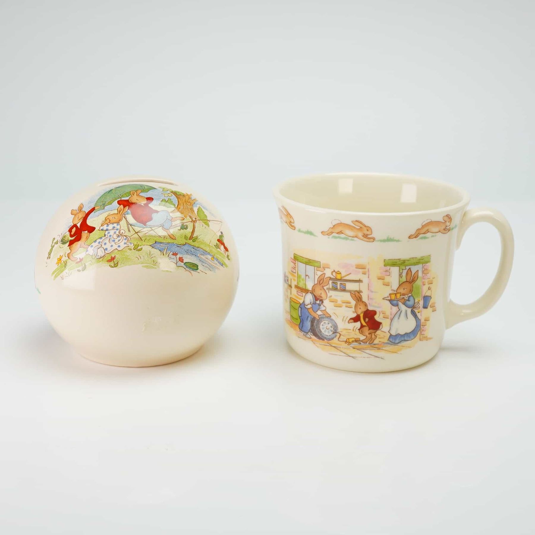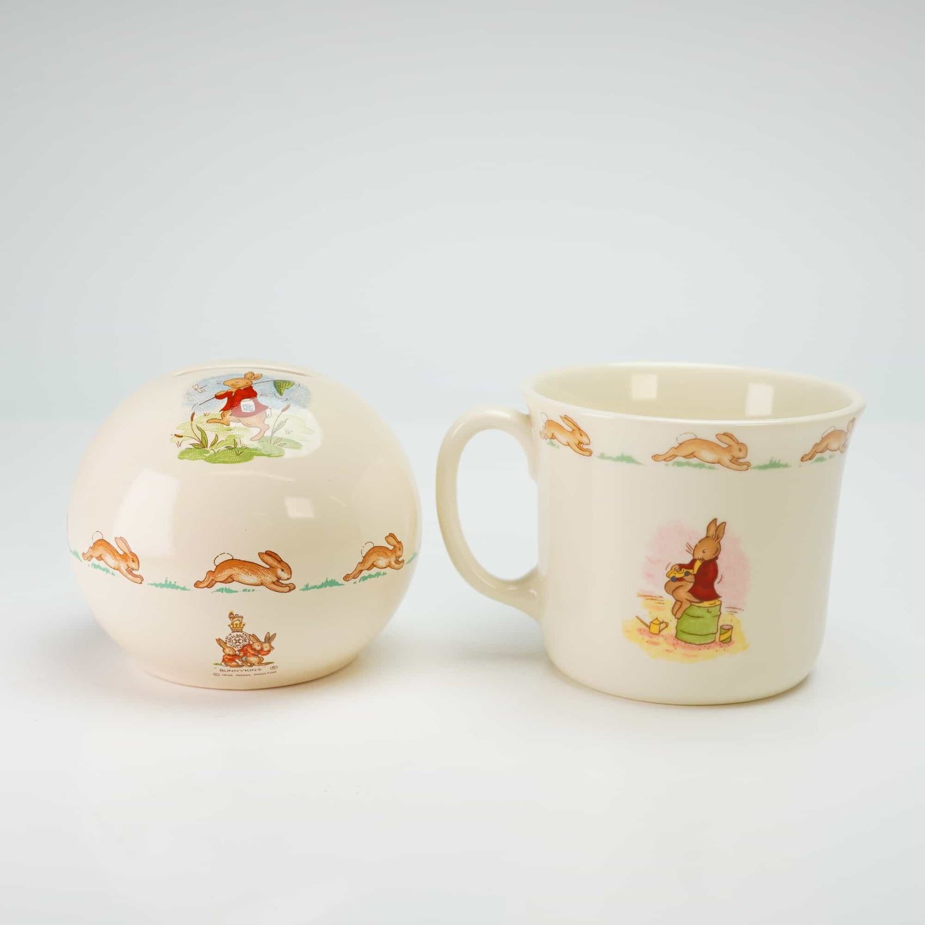 Lot 290 2pc Royal Doulton Bunnykins Bone China Money Ball & Mug