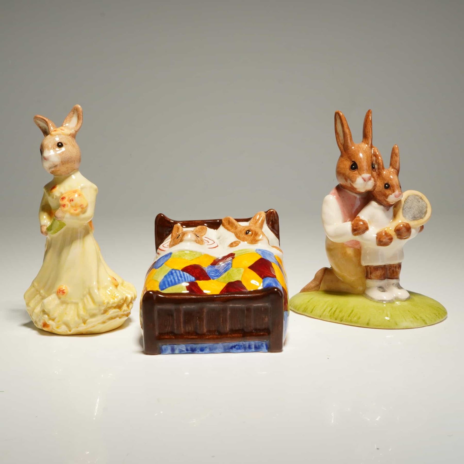 Lot 328 5pc Royal Doulton Bunnykins Sleepytime Schoolmaster Polly Bridesmaid
