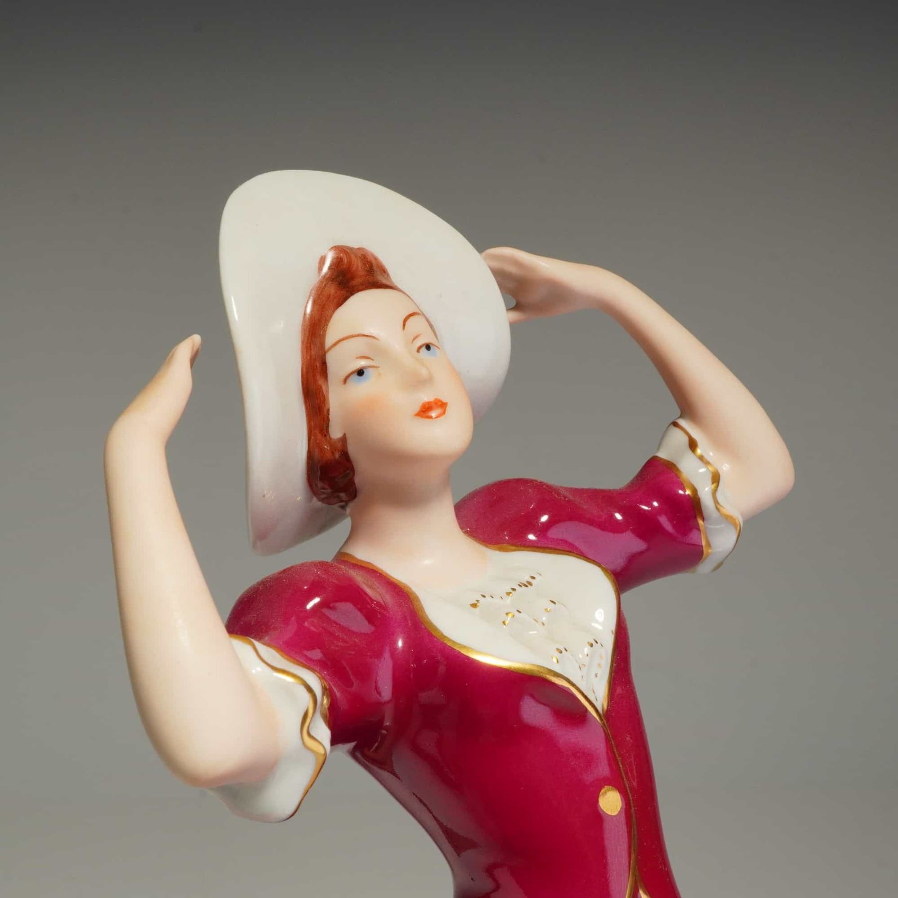 Lot 422 Royal Dux Bohemia Porcelain Lady with Hat Figurine