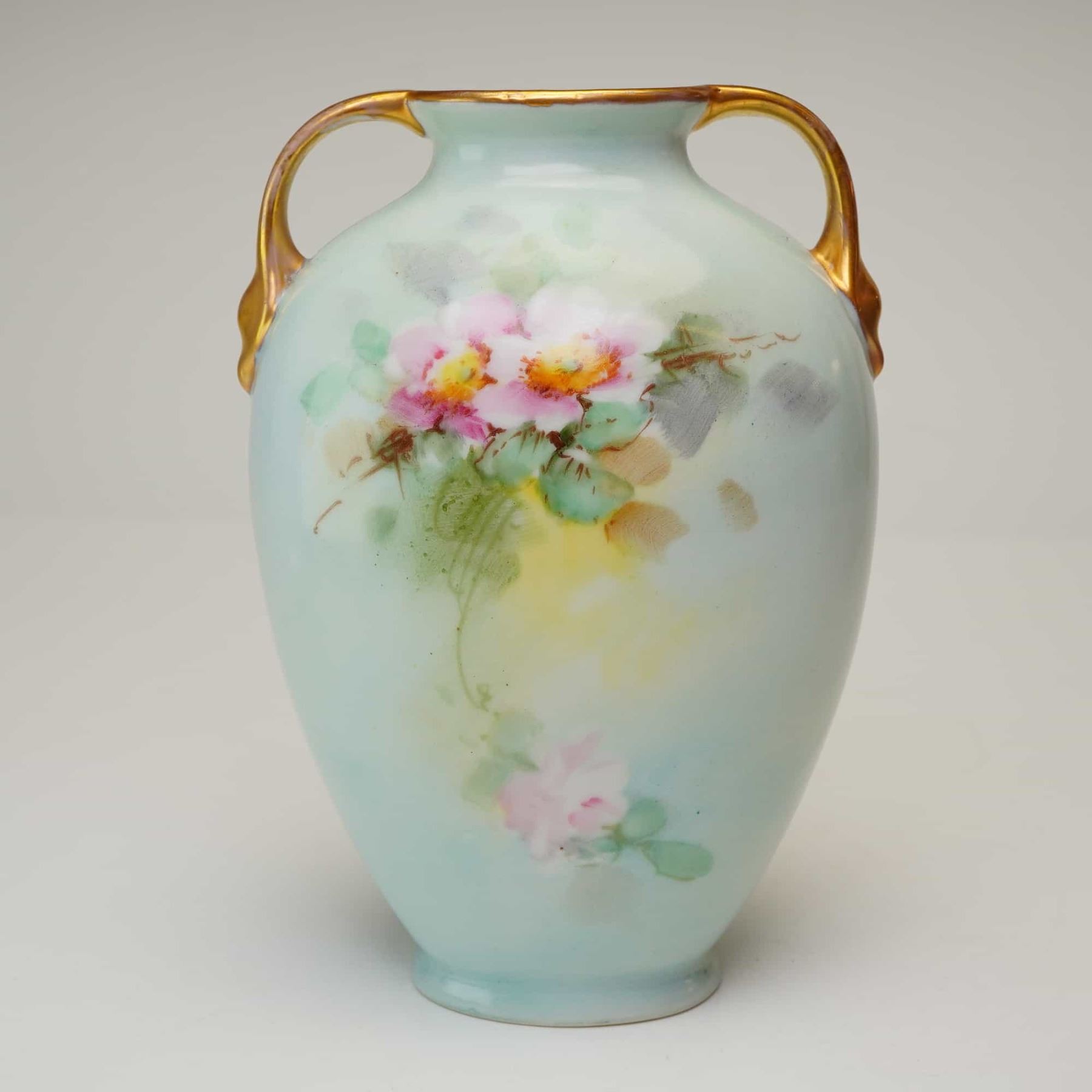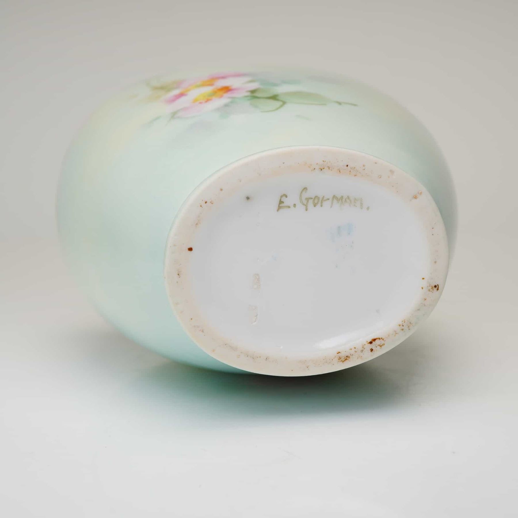 Lot 427 E. Gorman Hand-Painted Pink Blossom Porcelain Double Handled Vase
