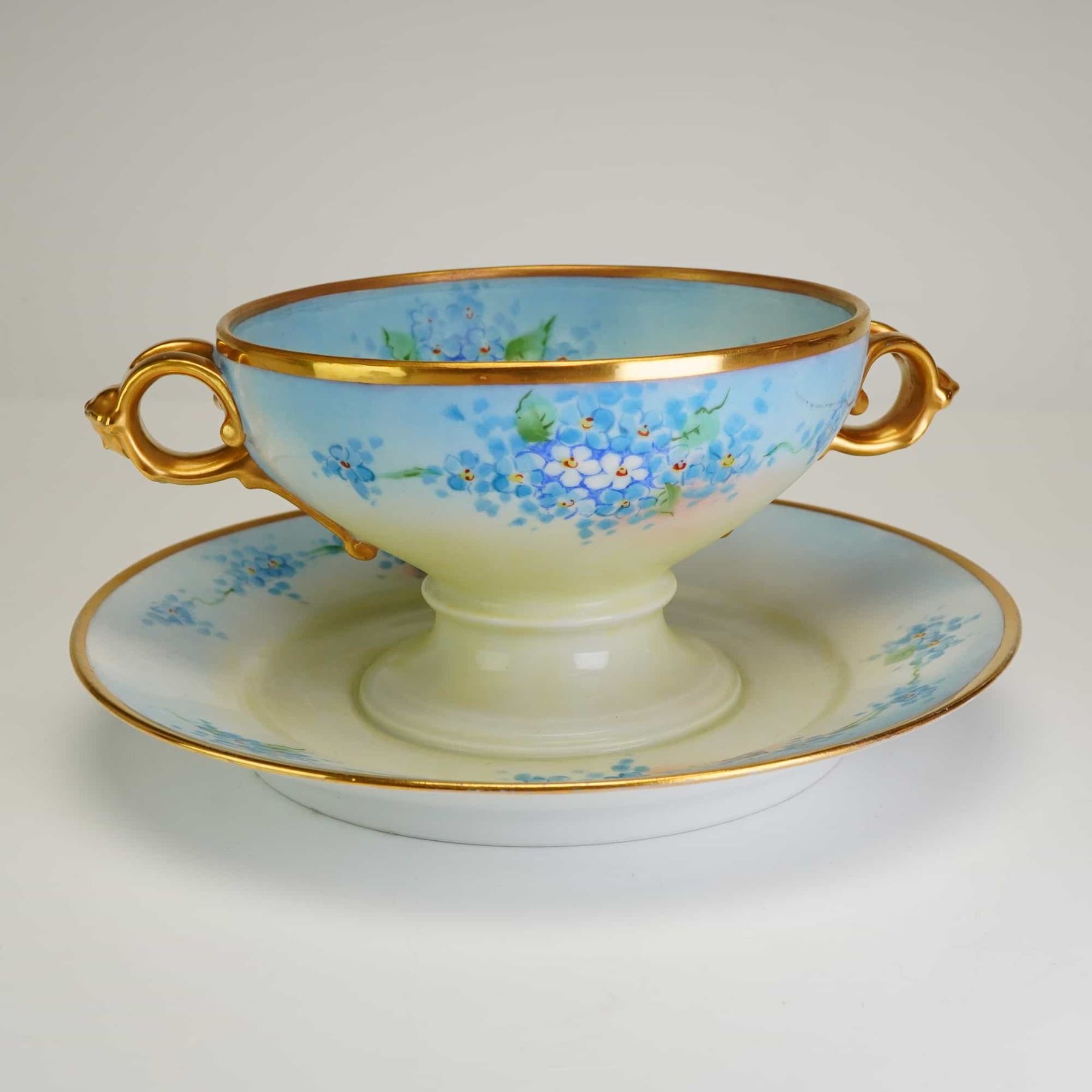 Lot 429 Rosenthal Porcelain Bullion Cup on Integral Undertray, Forget-Me-Not