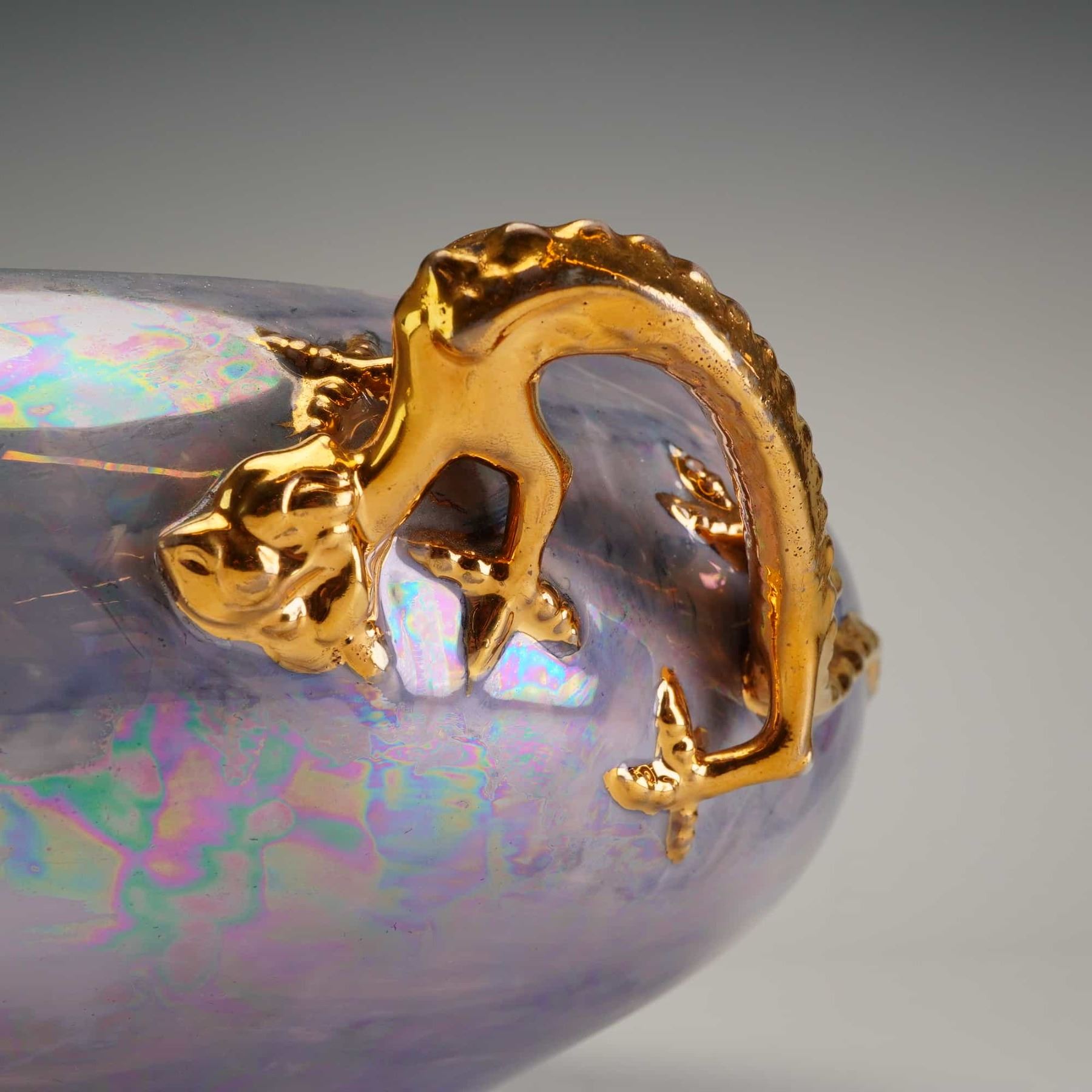 Lot 430 Willets Belleek Lustre and Gilded Dragon-Handle Bowl
