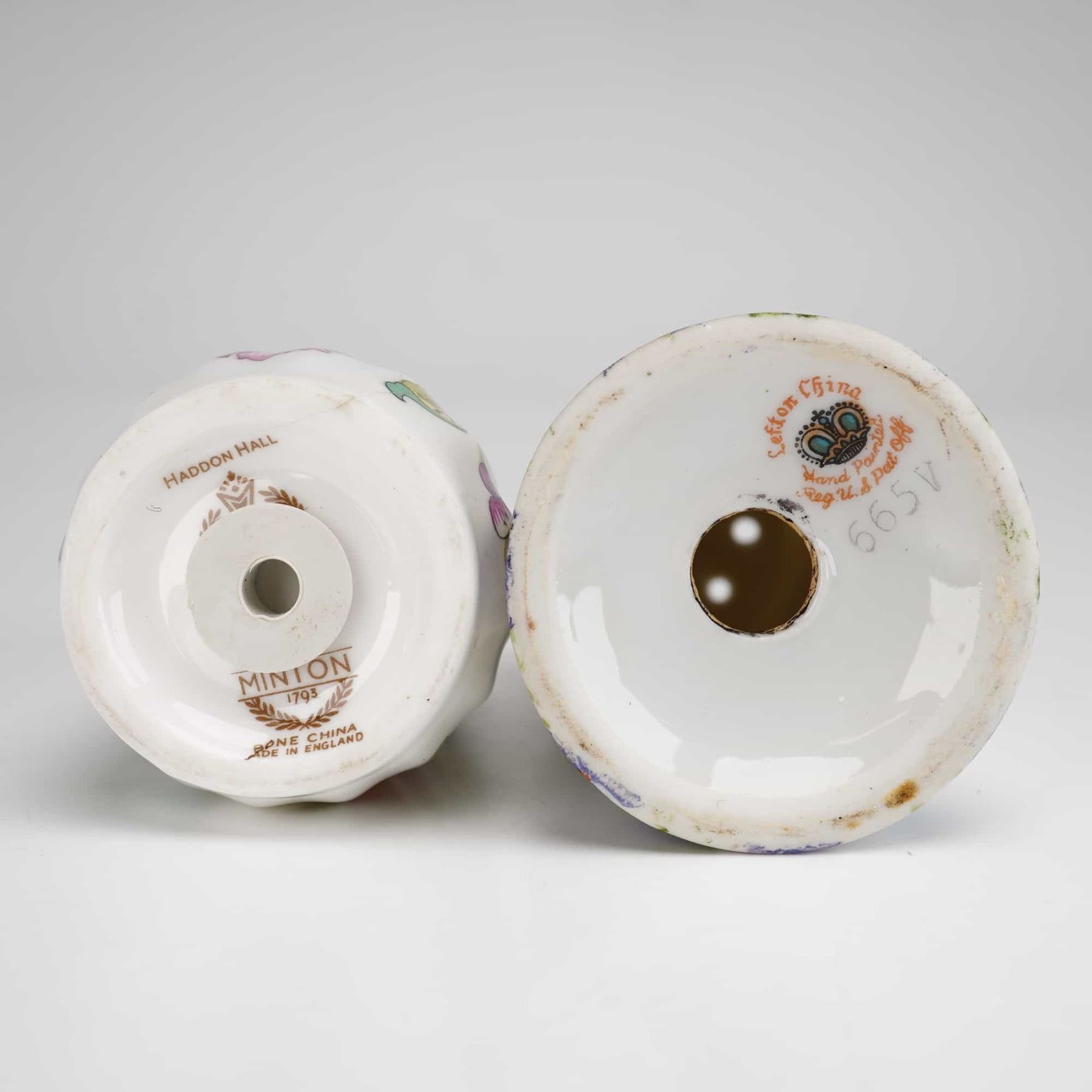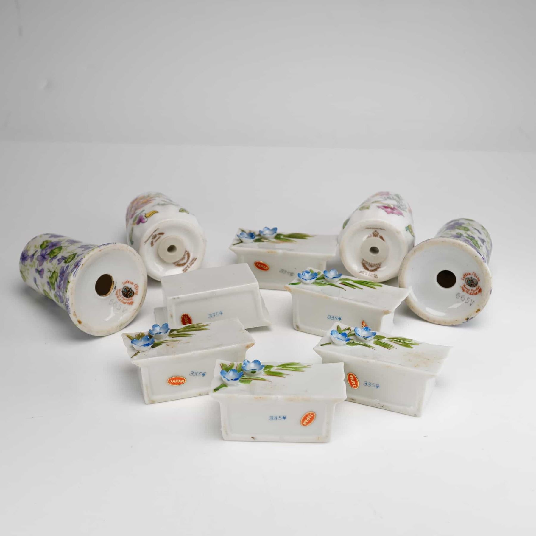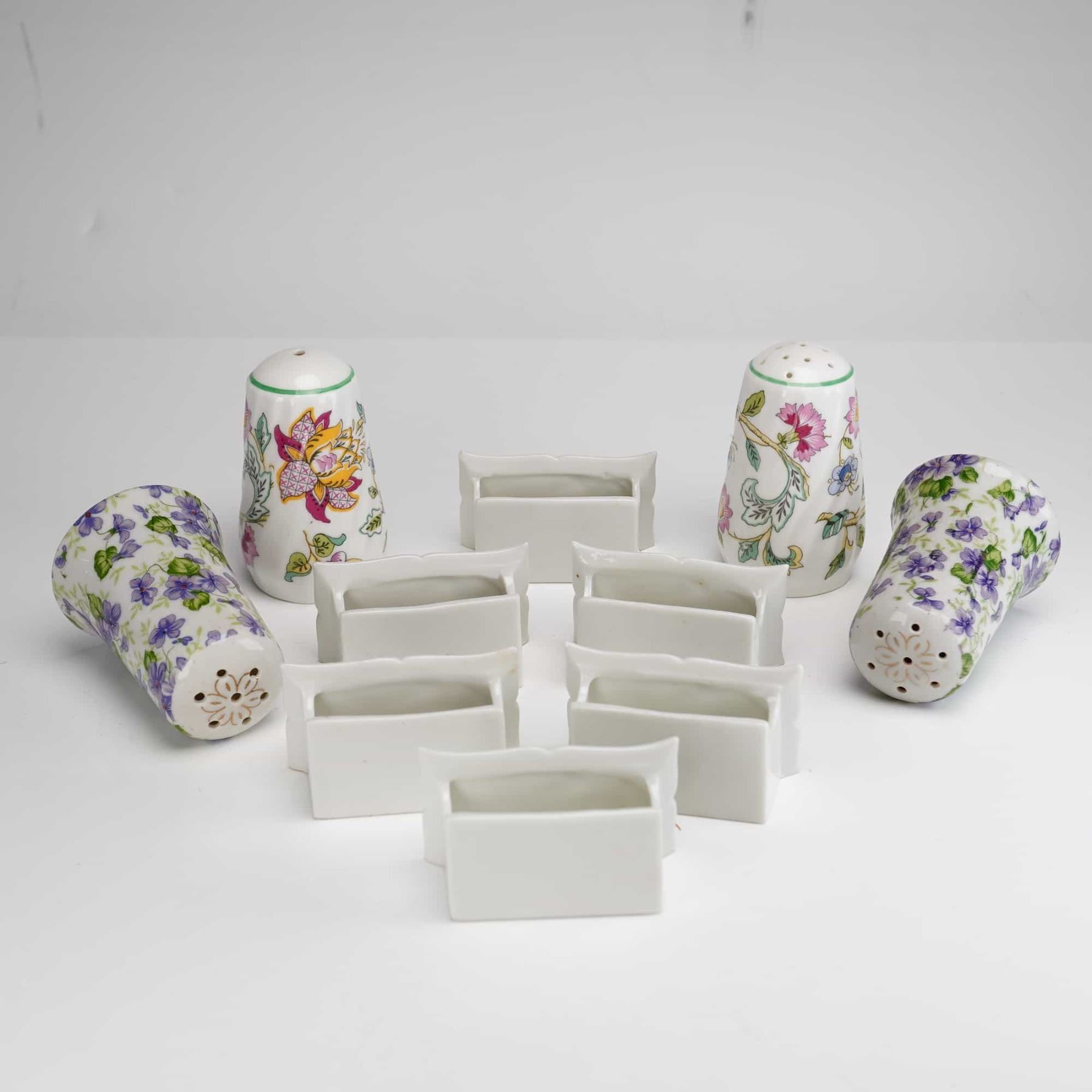 Lot 435 10pc Assorted Japanese & English Porcelain Floral Place Card Holders and Shakers, Including Lefton a