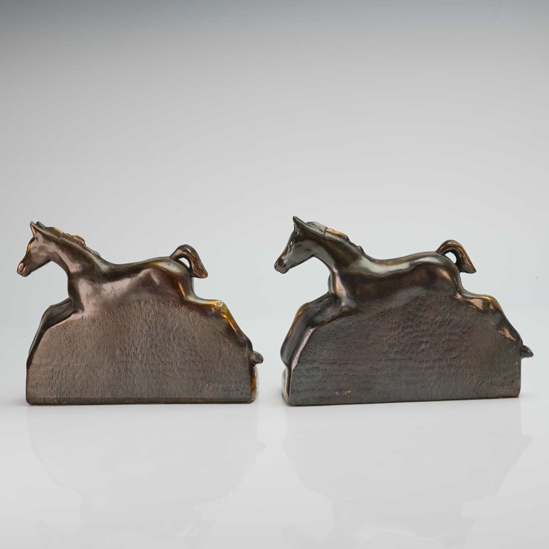 Lot 436 Pair of Bronzed Metal Running Colt Horse Bookends, Signed