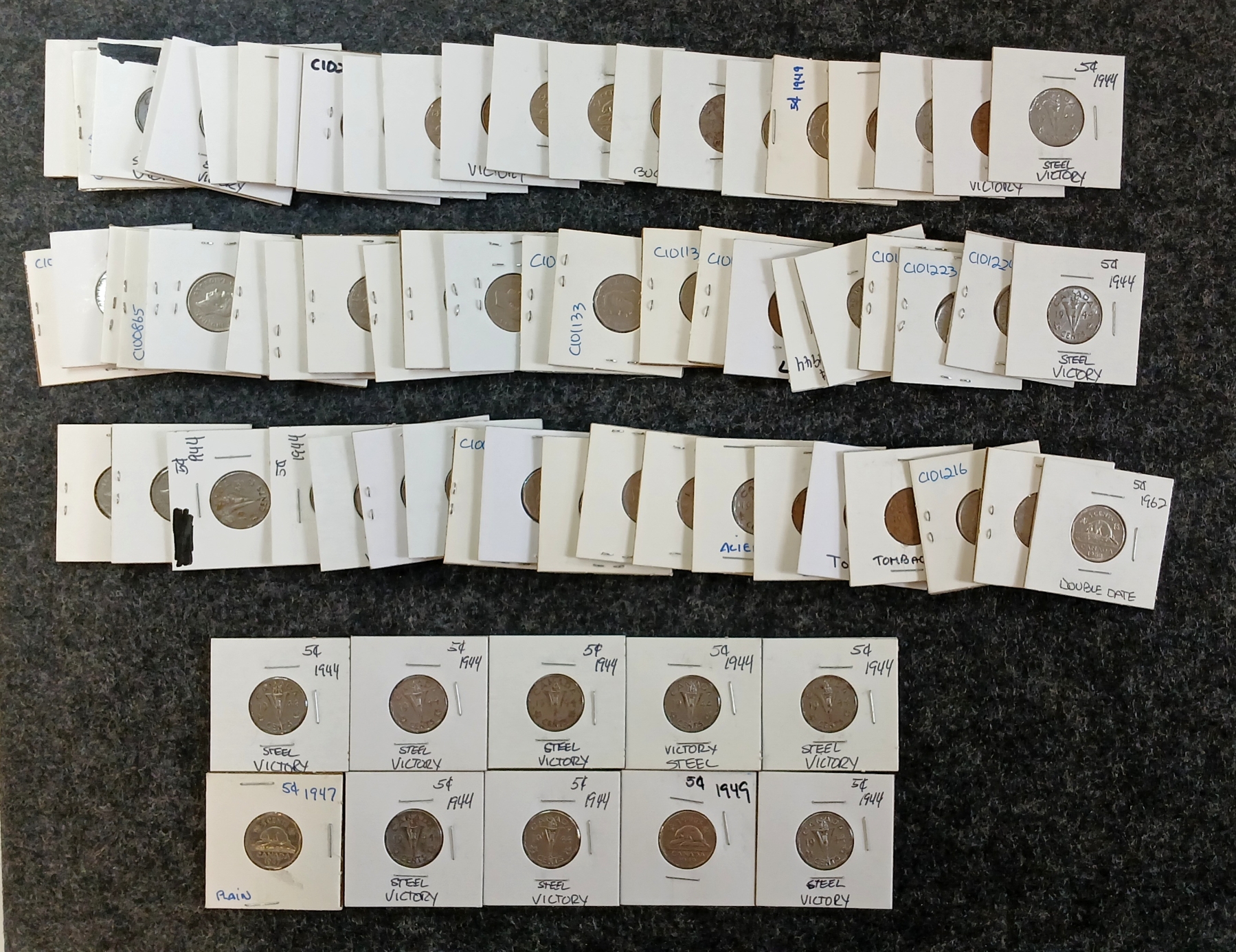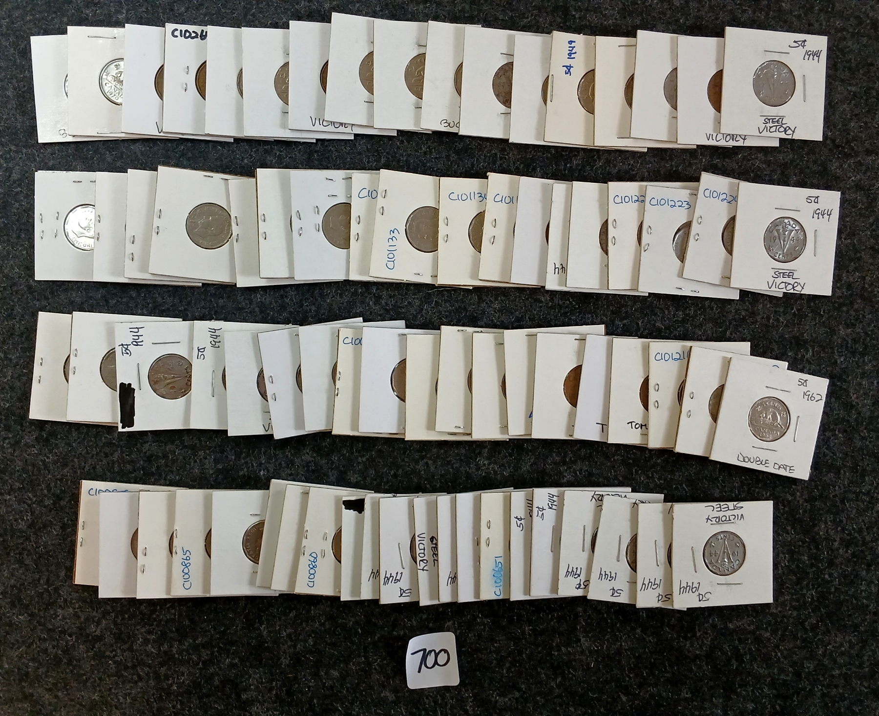 Lot 700 QTY OF 1942-1977 CDN 5 CENT COINS