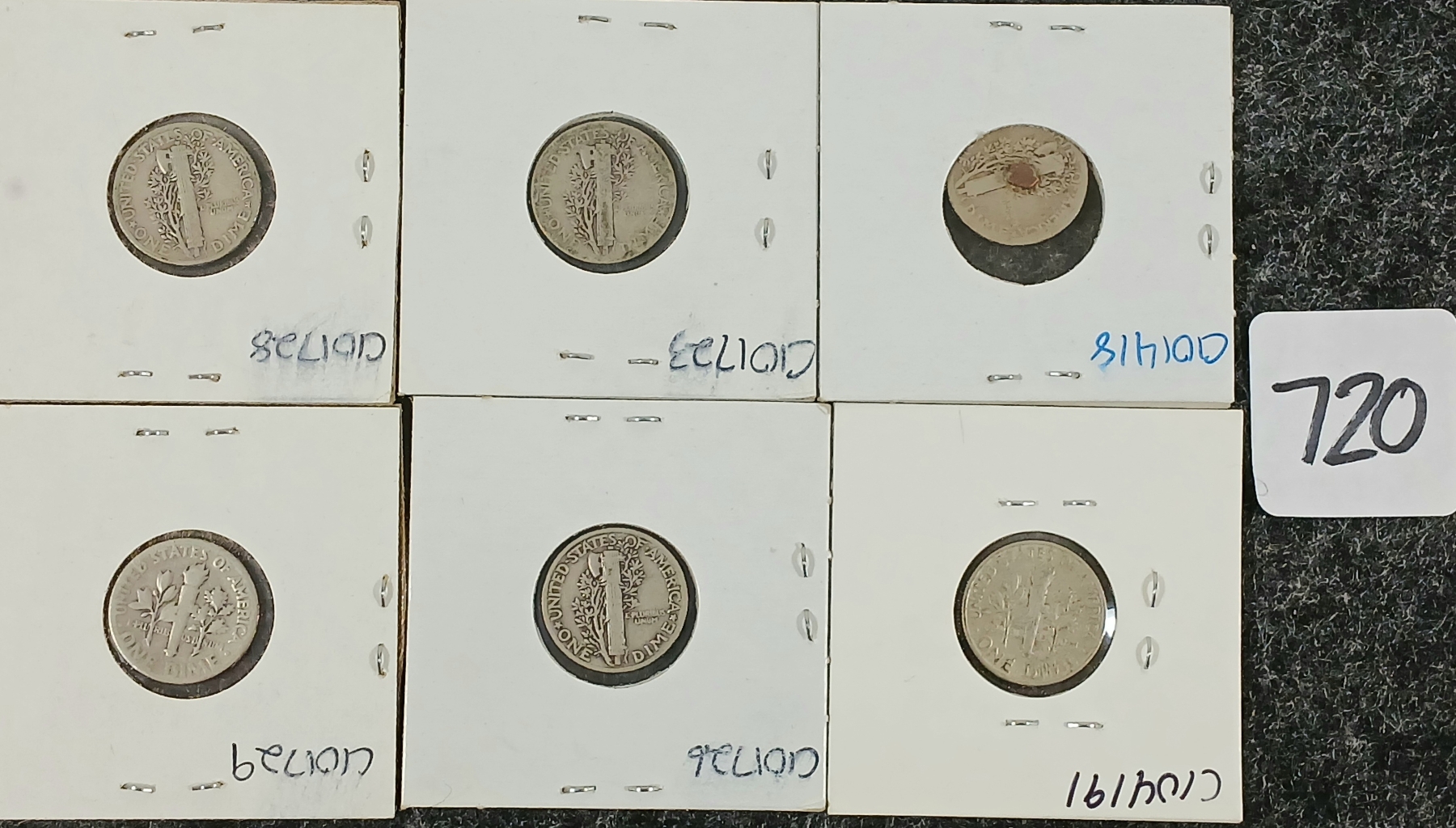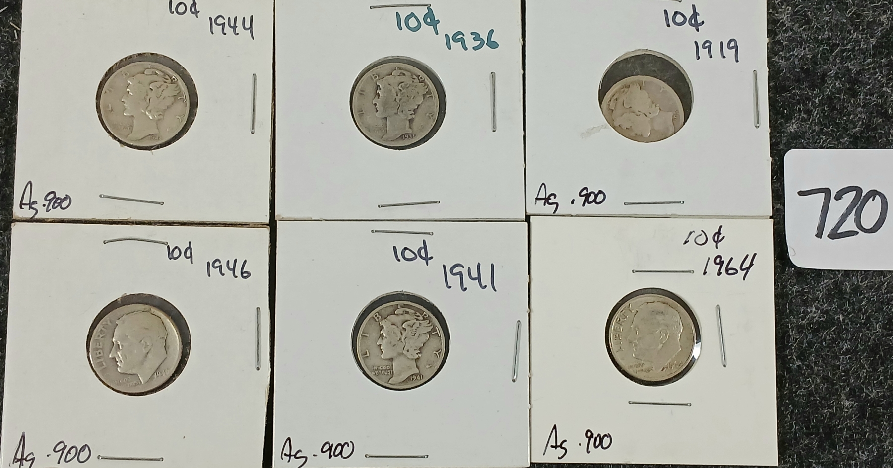 Lot 720 LOT OF 6 - 1919-1964 U.S. MERCURY & ROOSEVELT SILVER 10 CENT COINS