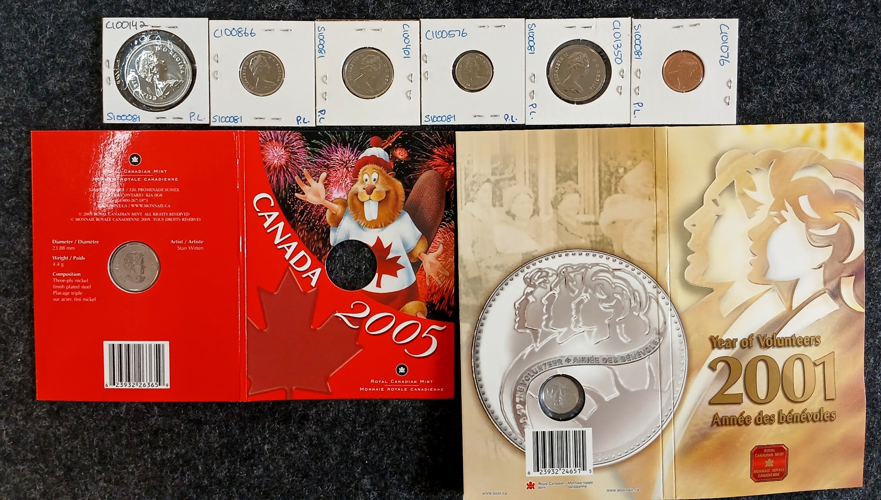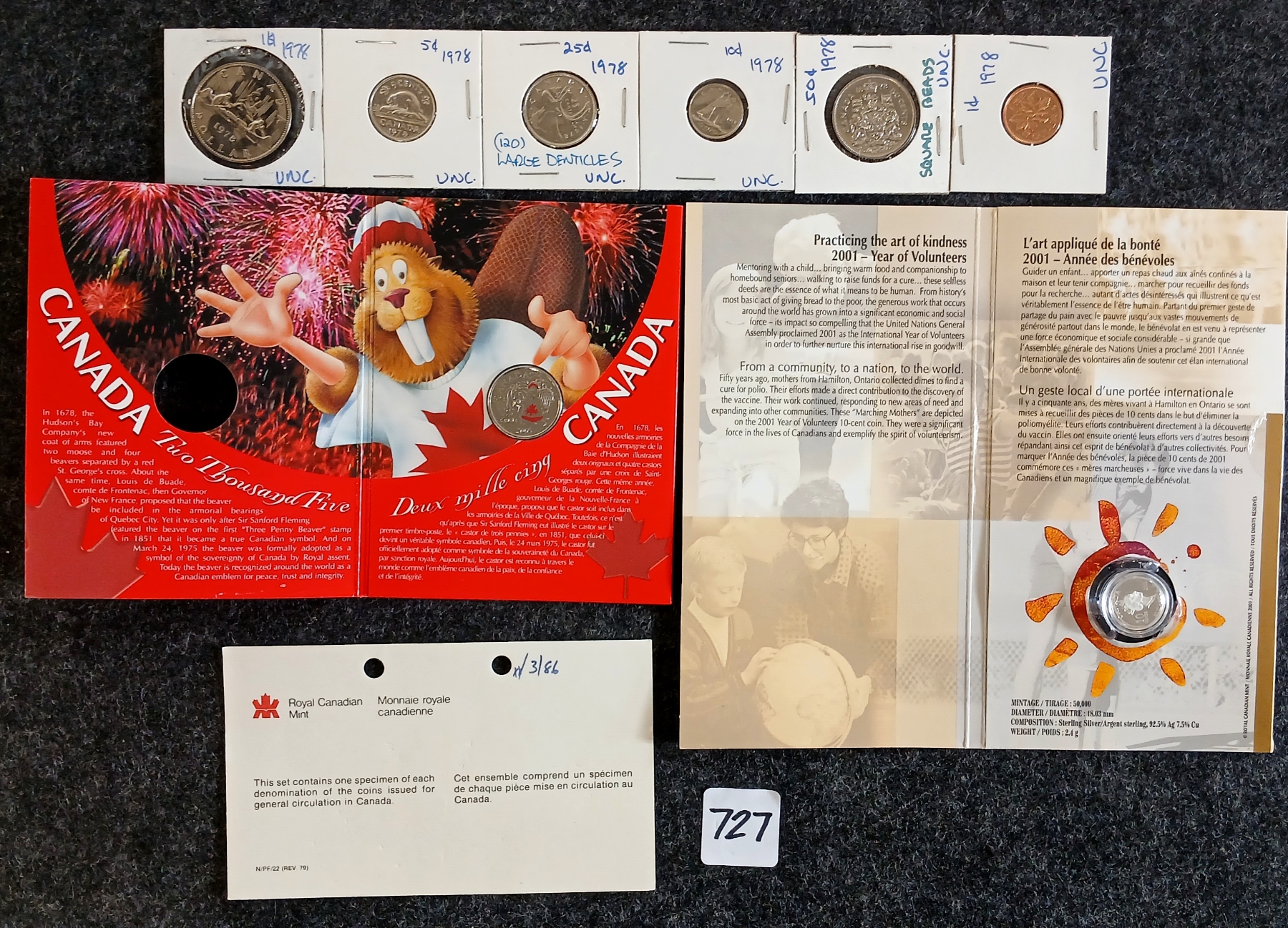 Lot 727 LOT OF 3 - 2001 RCM SILVER 10 CENT COIN, 1978 RCM PROOFLIKE SET & 2005 RCM 25 CENT COIN