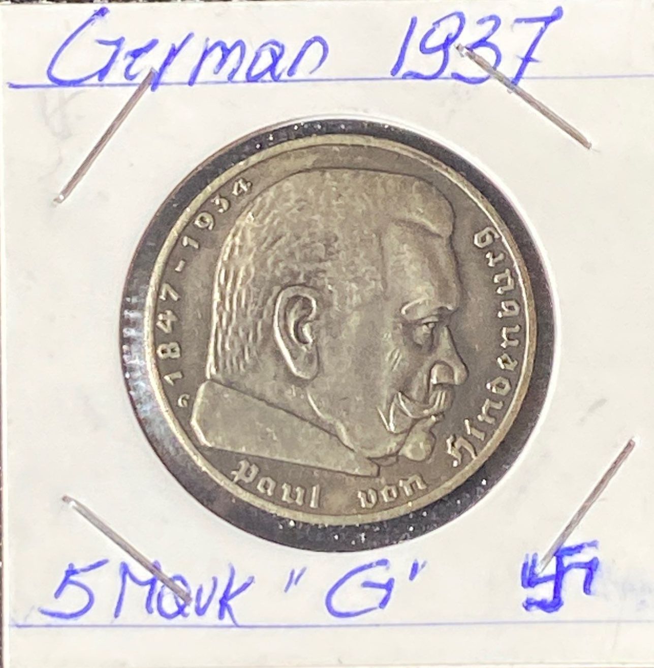 Lot 25 1937 German 5 Mark Coin 90% Silver 13.77 Grams