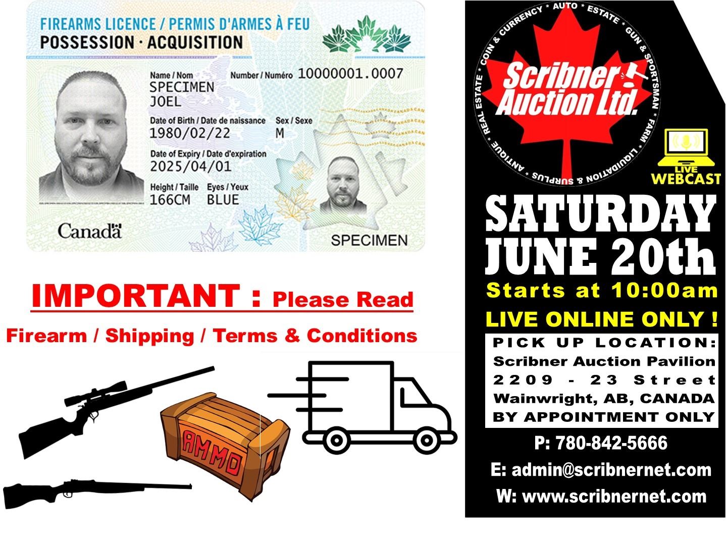 4. U.S. Firearm bidders/buyers, PAYMENT WILL BE PROCESSED AT THE CONCLUSION OF THE AUCTION. U.S. BUYERS MUST CHECK IF THE ITEMS ARE ELIGIBLE FOR IMPORT TO THE U.S. FROM CANADA BEFORE BIDDING! Your purchases will be sent to Borderview International Firearm Logistics for importing into the U.S. All fees for importation and shipping will be invoiced by Borderview. If you have any further questions regarding this process, please call 877-947-4867 or visit their website: www.borderview.com