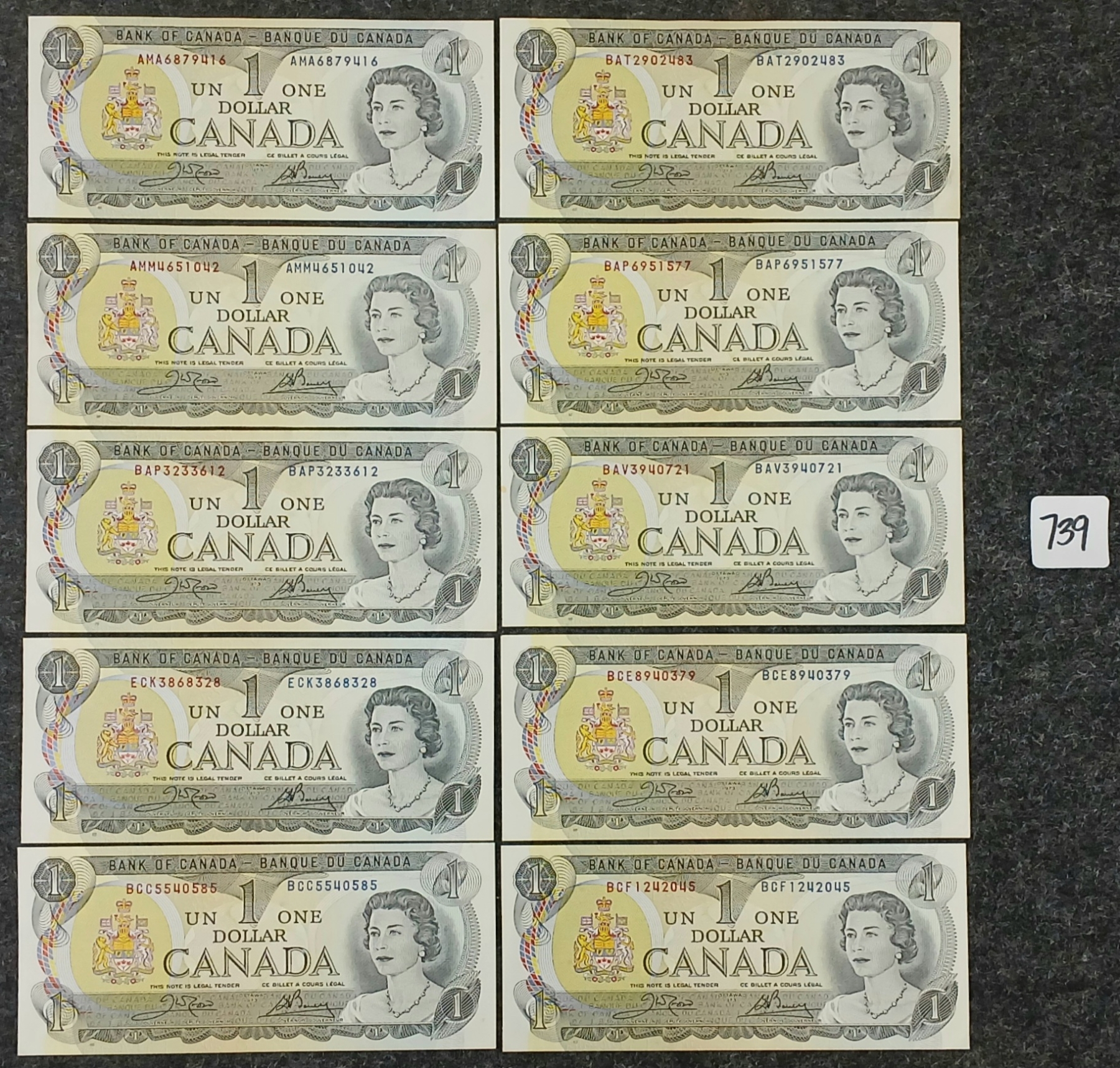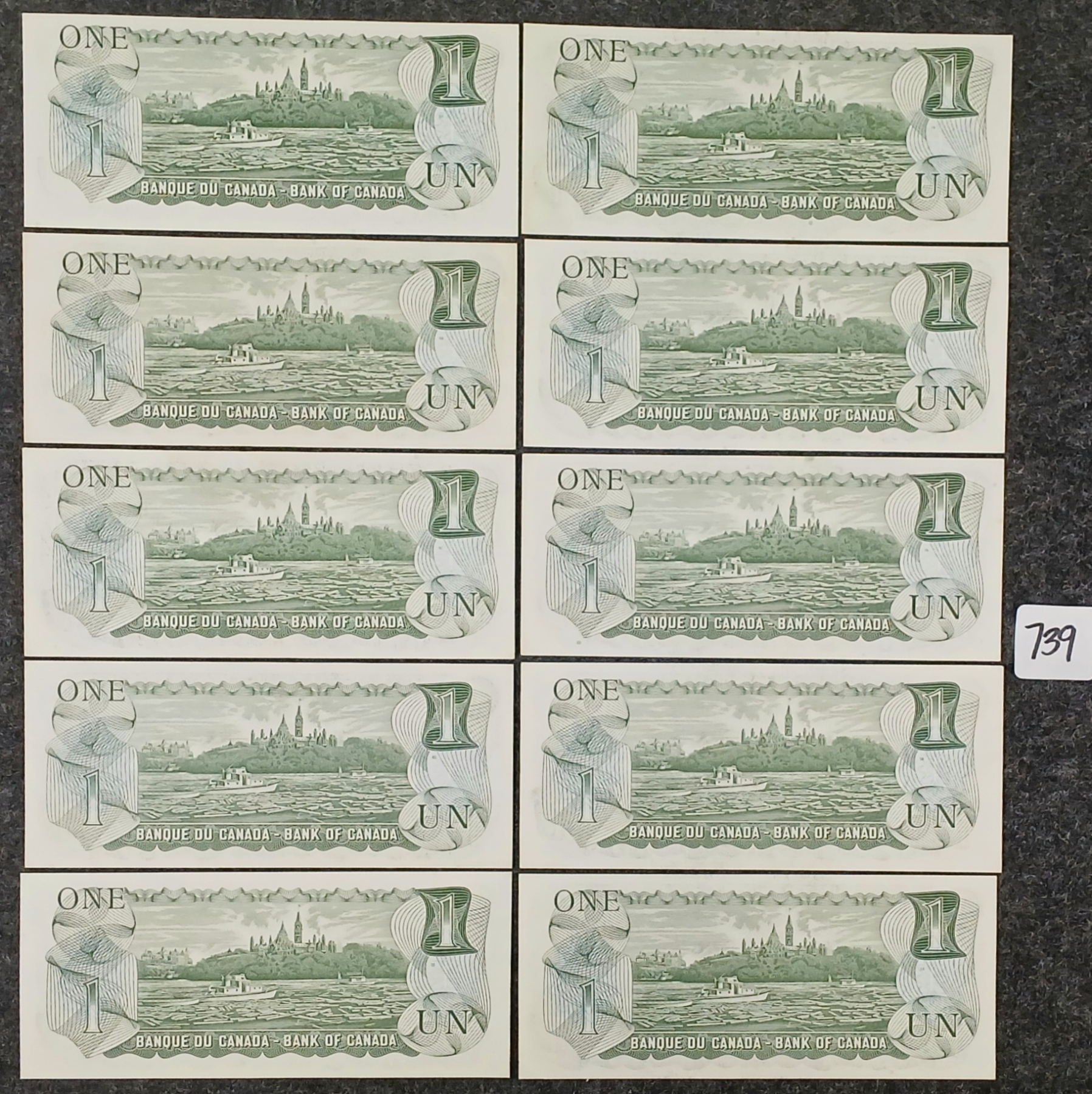 Lot 739 LOT OF 10 - 1973 CDN $1 BANKNOTES - UNCIRCULATED
