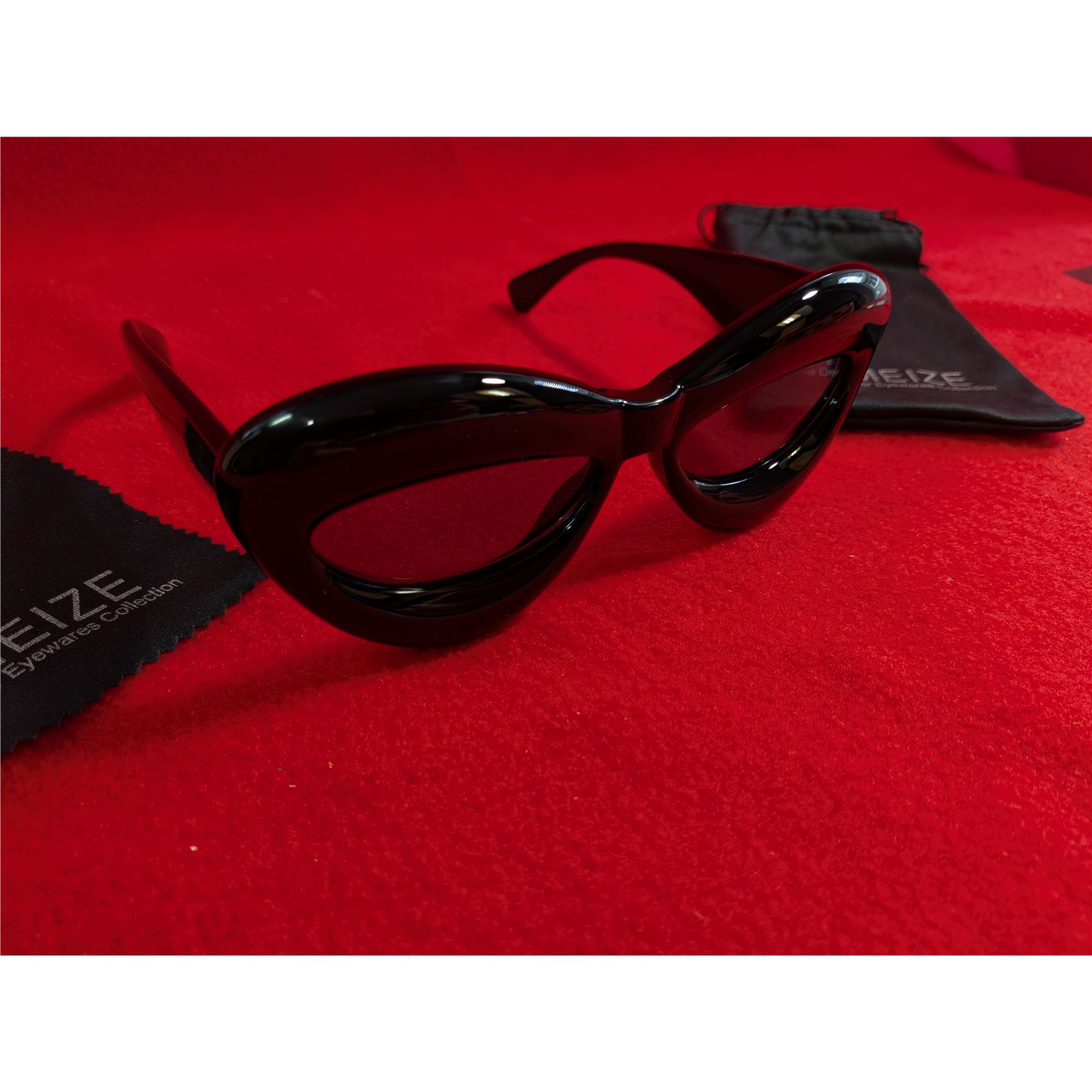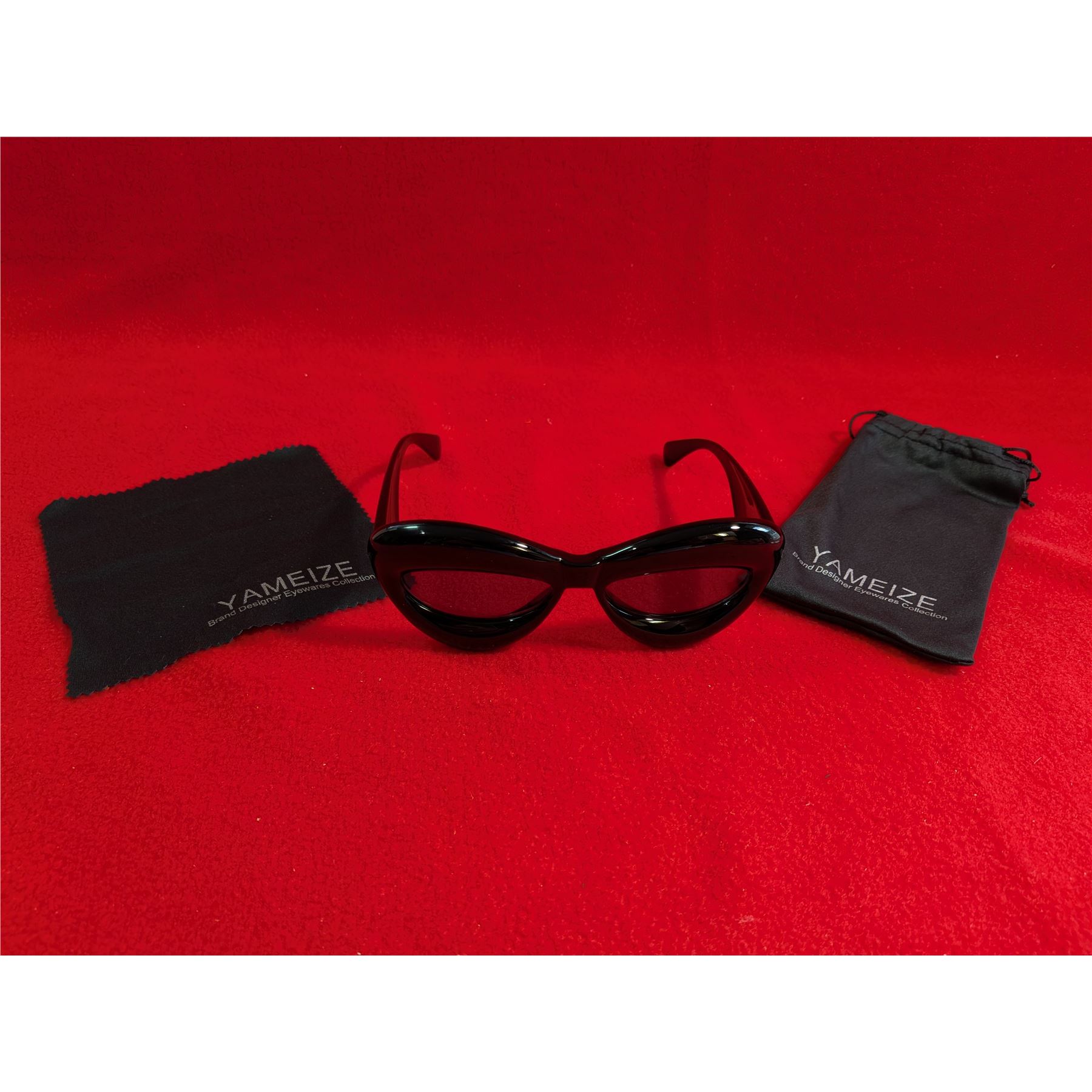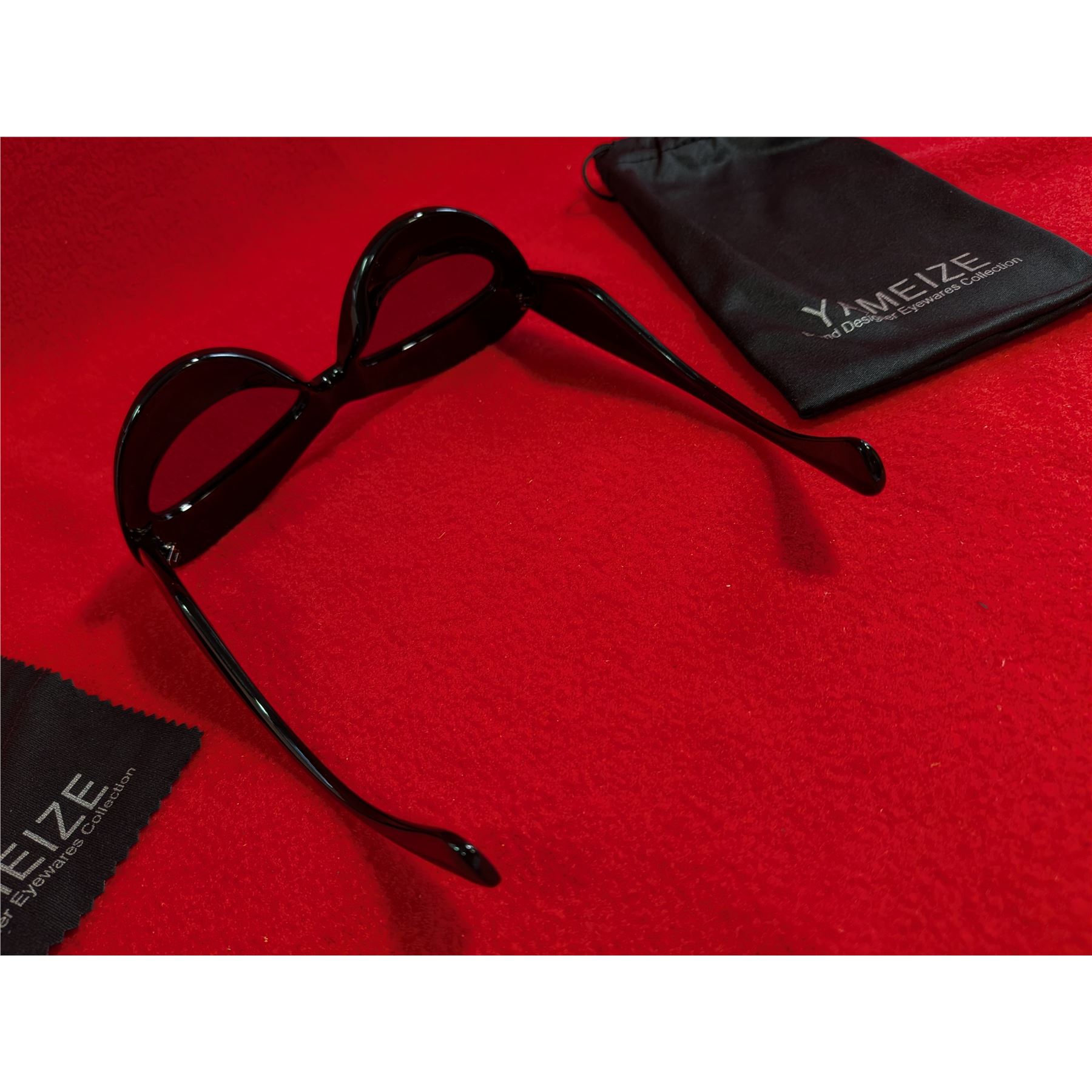 Yameize brand BLACK lip-shaped sunglasses featuring an exaggerated, thick, inflated cat-eye frame. Includes cleaning cloth.
