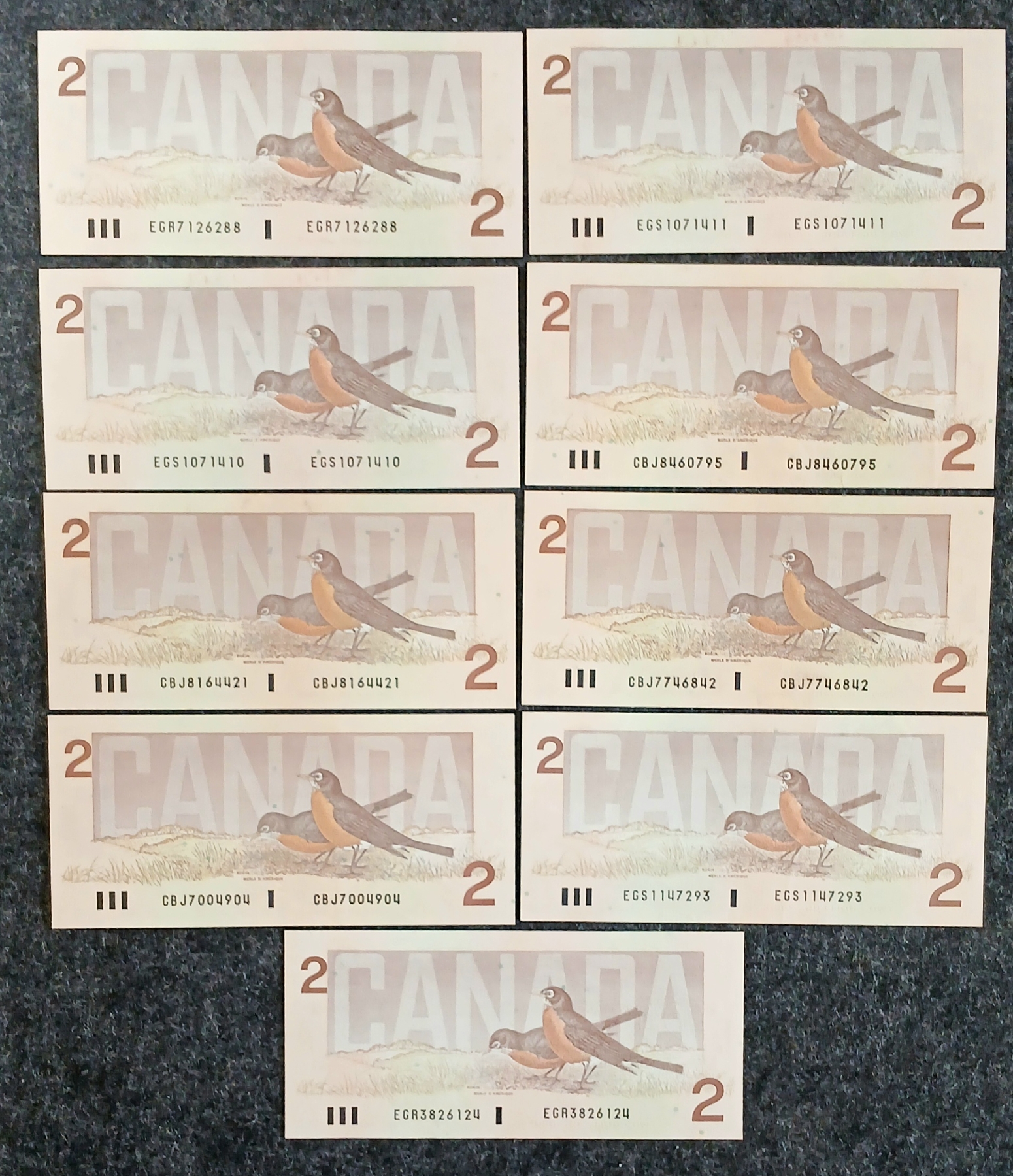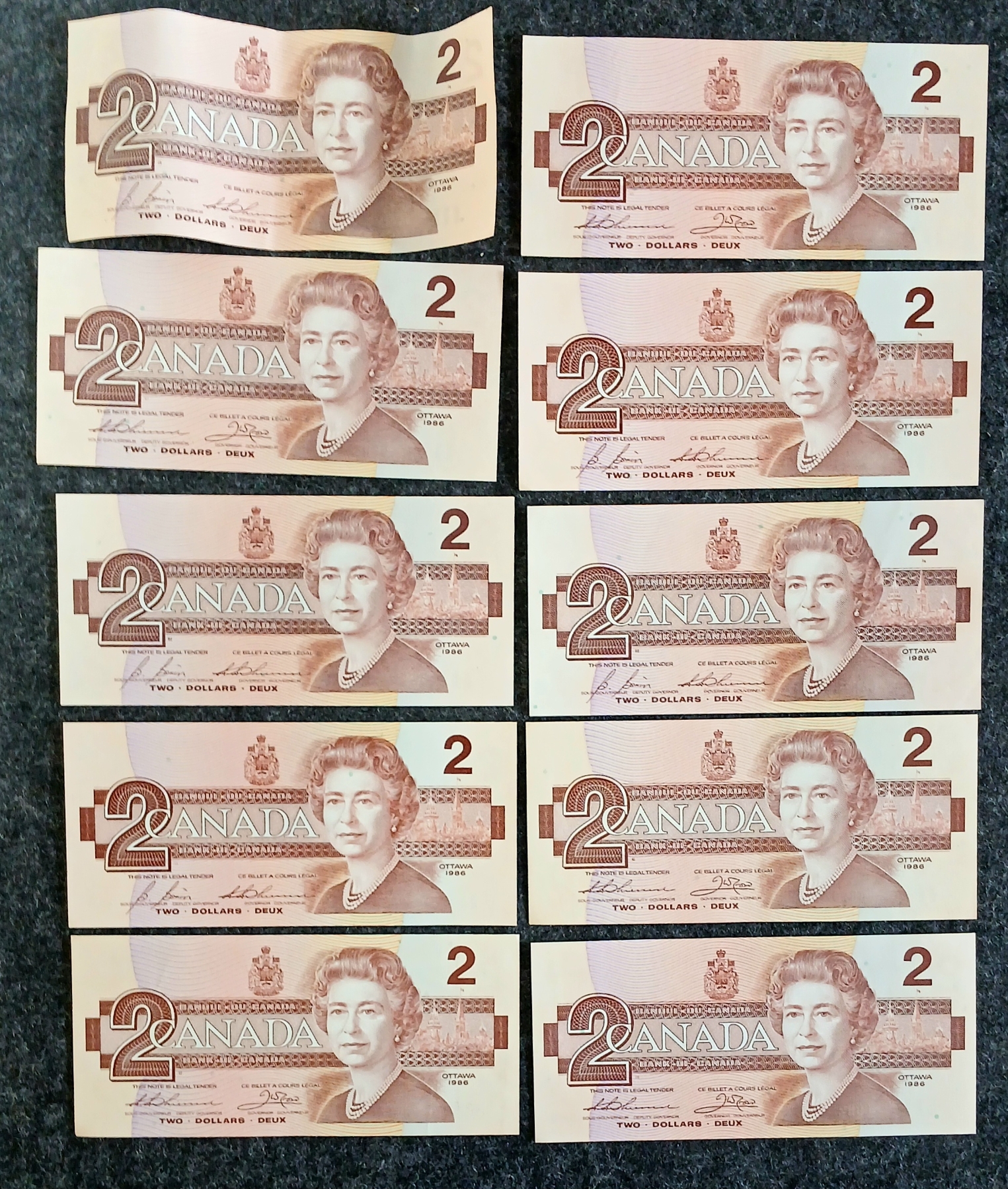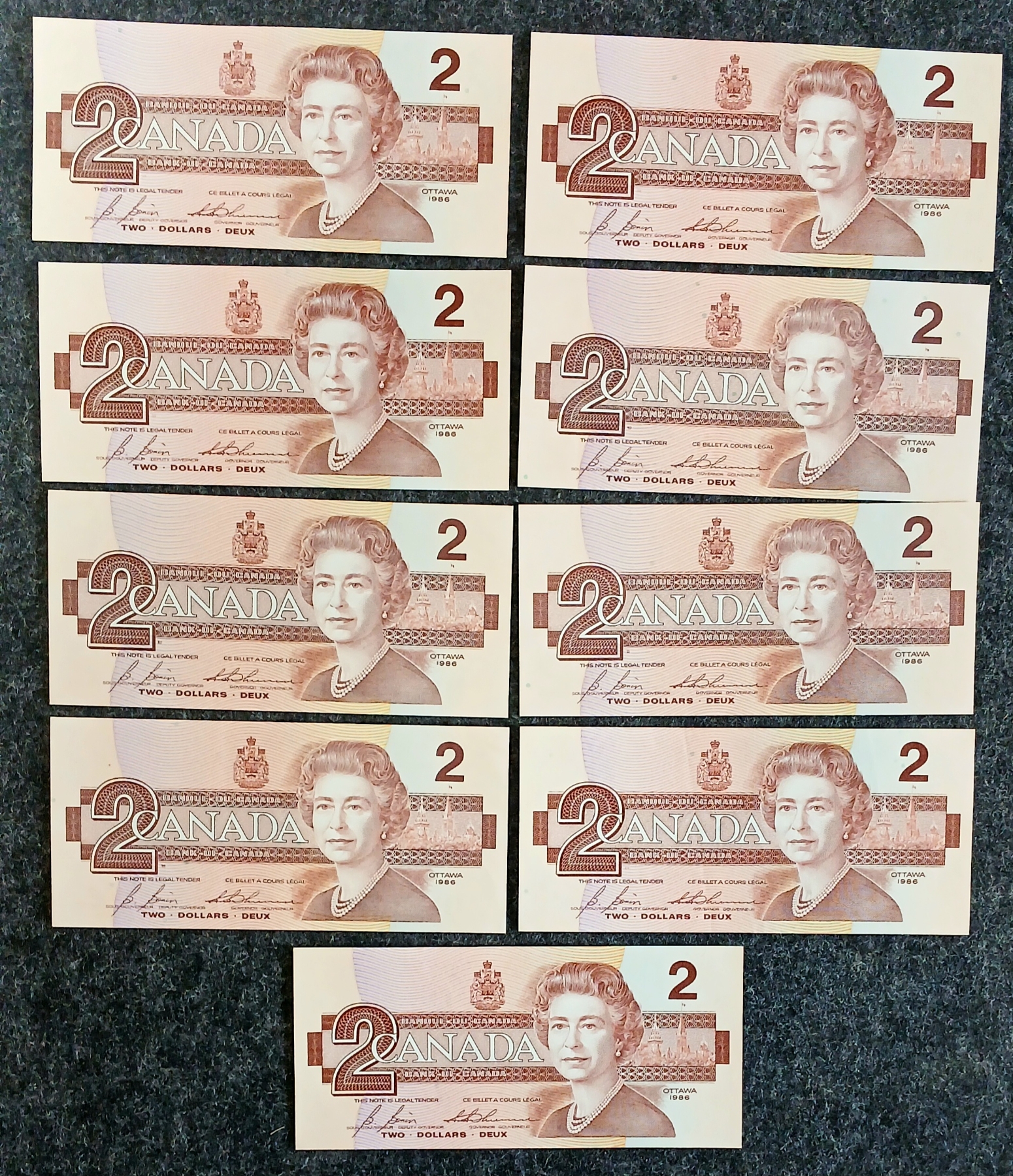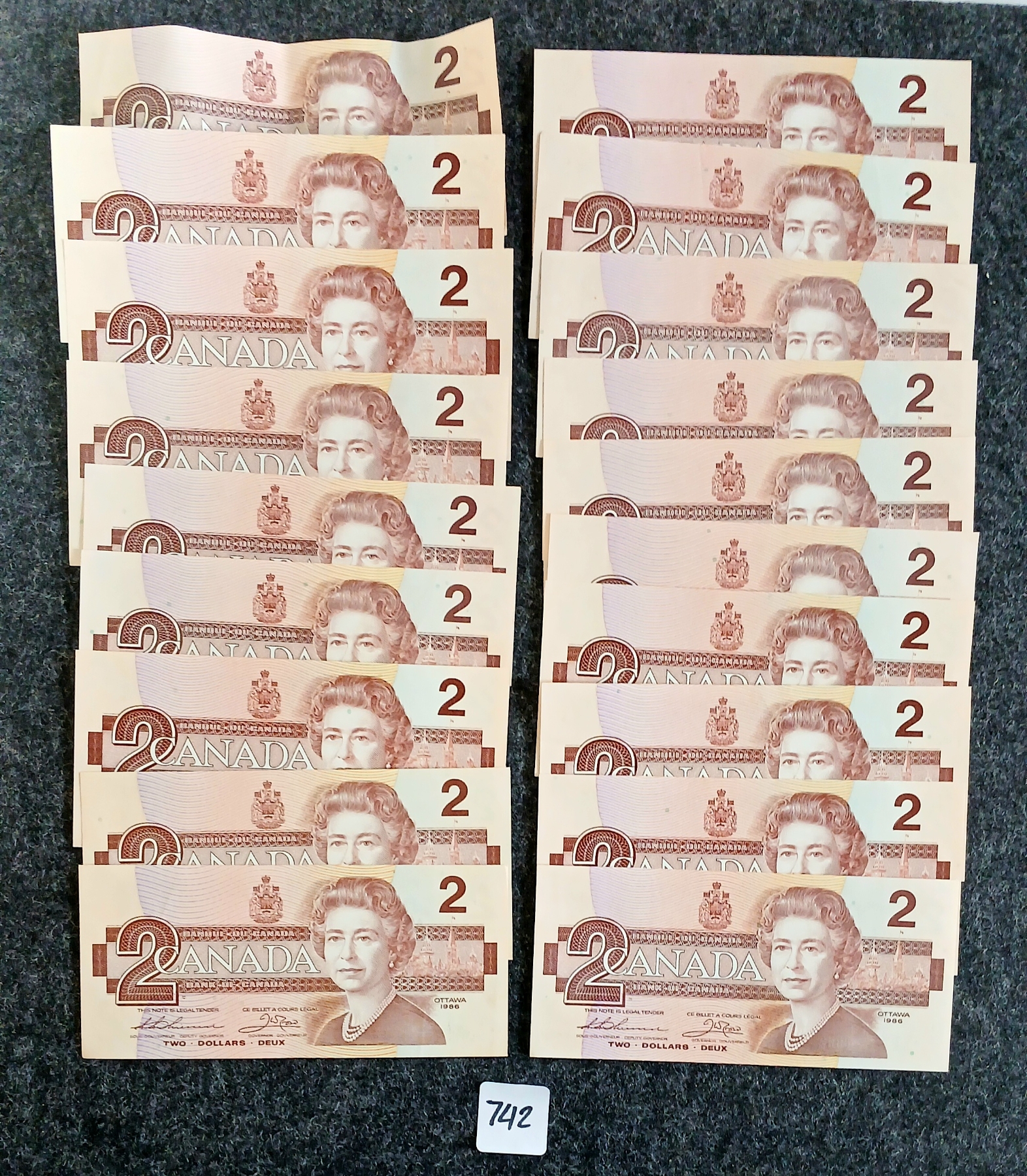 Lot 742 LOT OF 19 - 1986 CDN $2 BANKNOTES - SOME UNCIRCULATED