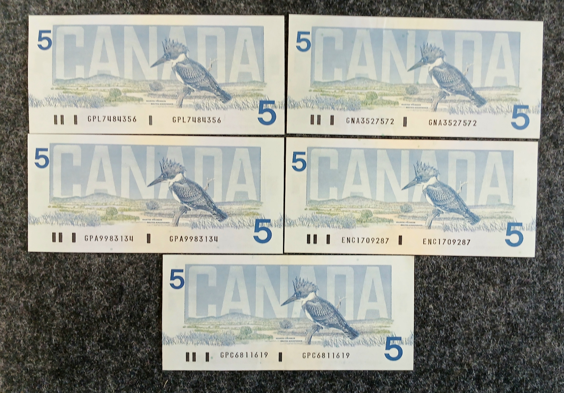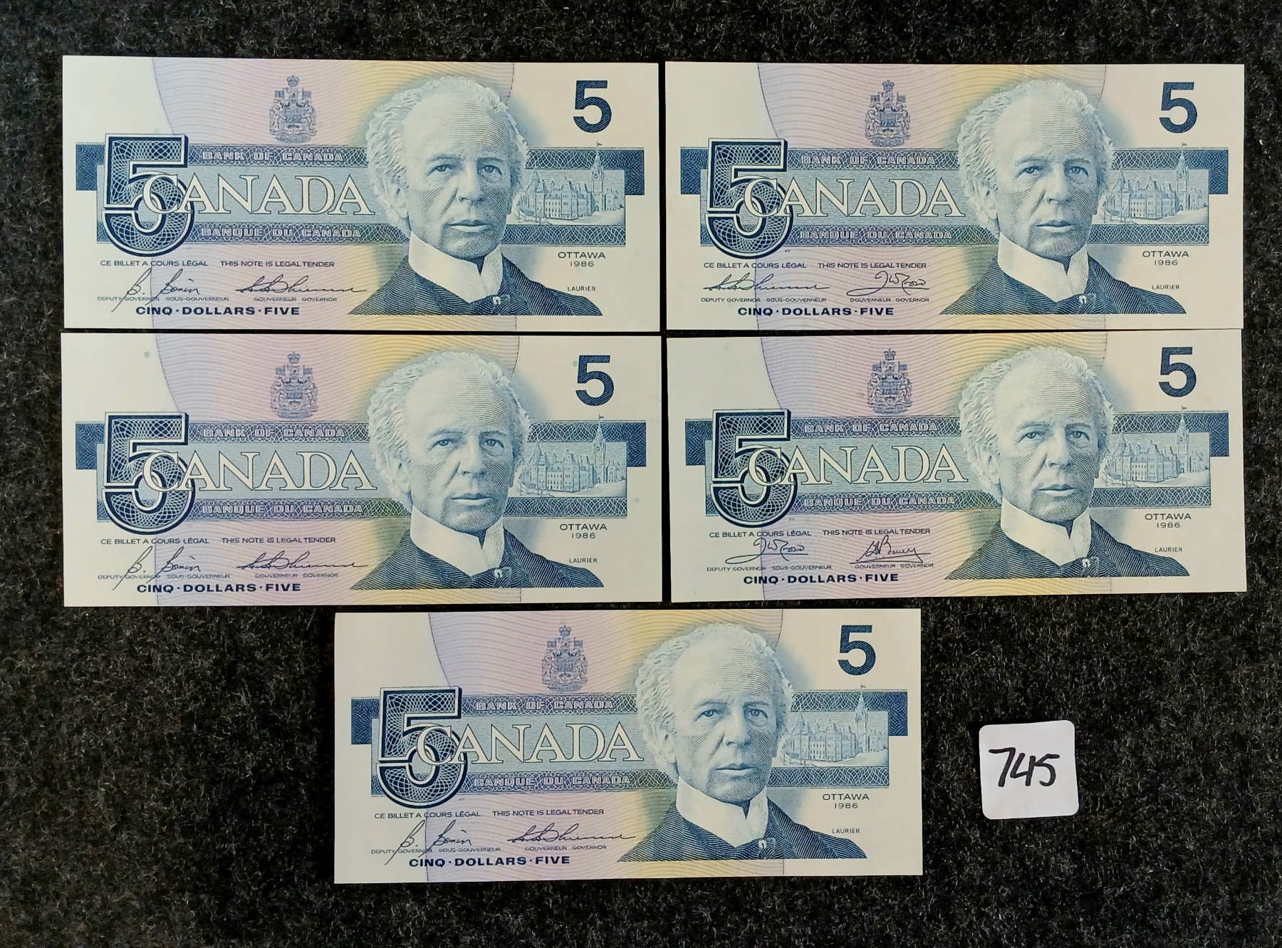 Lot 745 LOT OF 5 - 1986 CDN $5 BANKNOTES