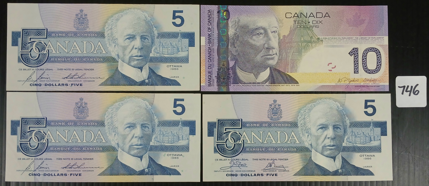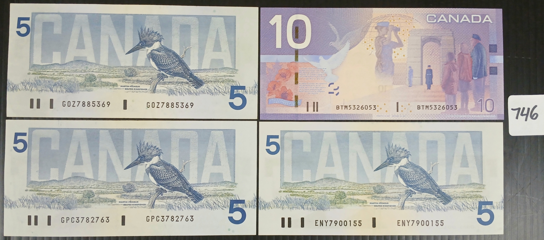 Lot 746 LOT OF 4 - 1986 & 2005 CDN $5 & $10 BANKNOTES