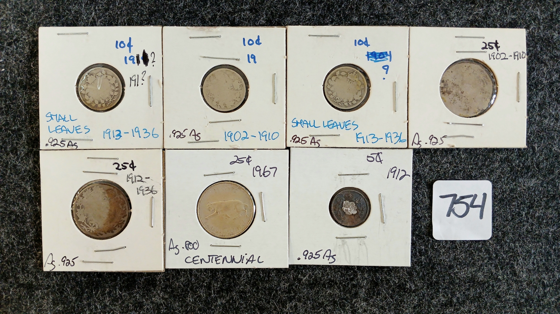 Lot 754 LOT OF 7 - 1902-1967 CDN 5 & 10 & 25 CENT COINS
