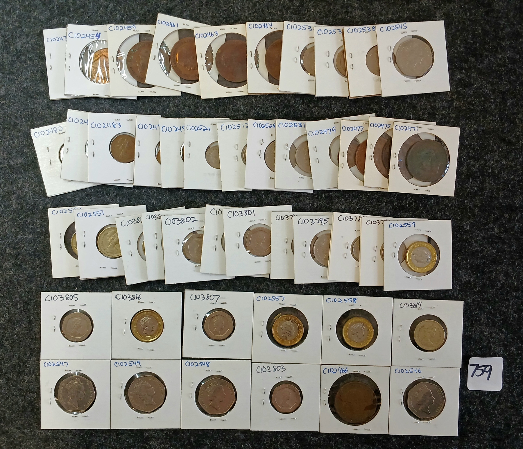 Lot 759 QTY OF 1902-2017 U.K. 1, 5, 10, 20 PENCE & 1 POUND COINS