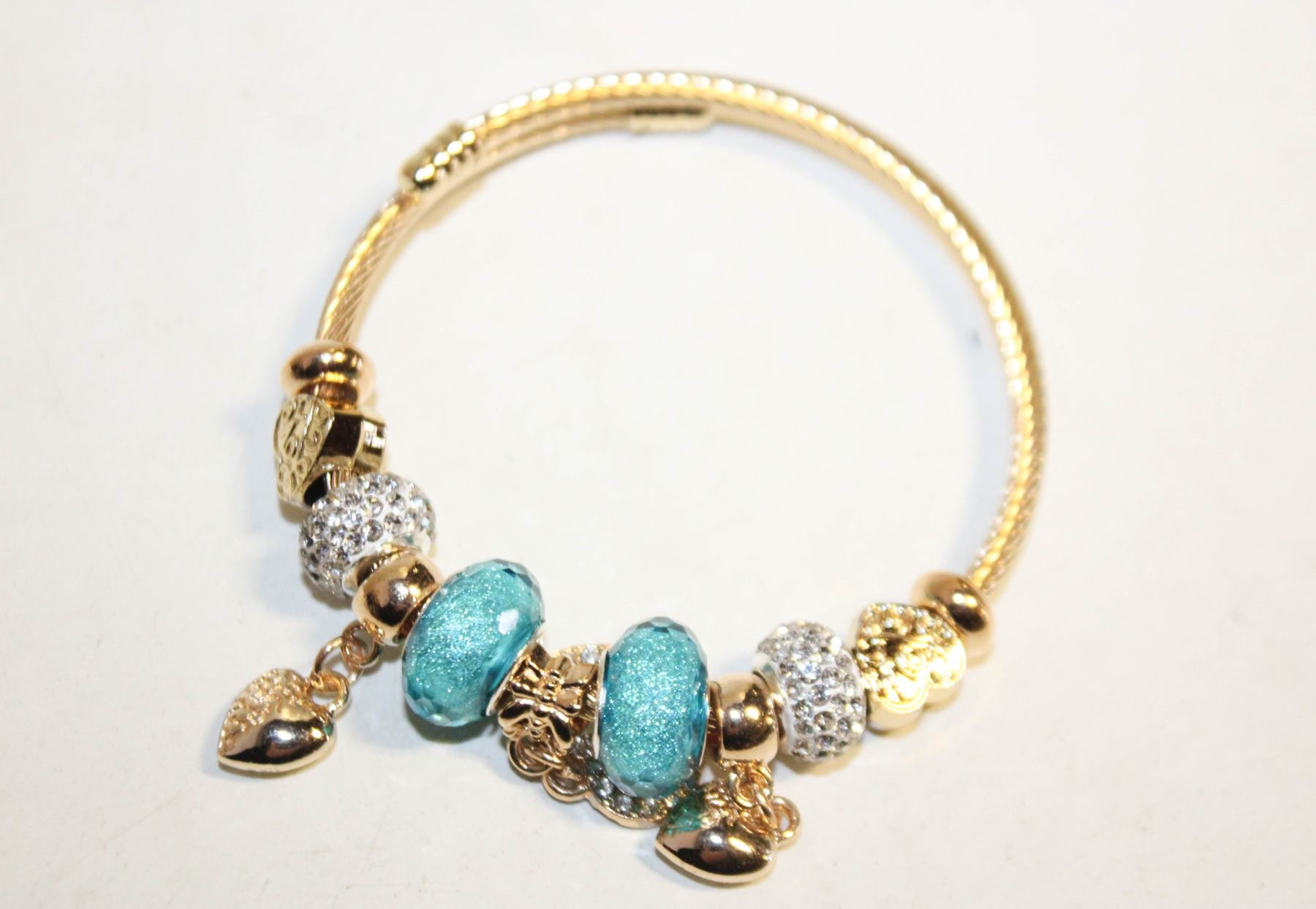 Lot 6870 NEW CHARM HEART BLUE, GOLDTONE, RHINESTONES