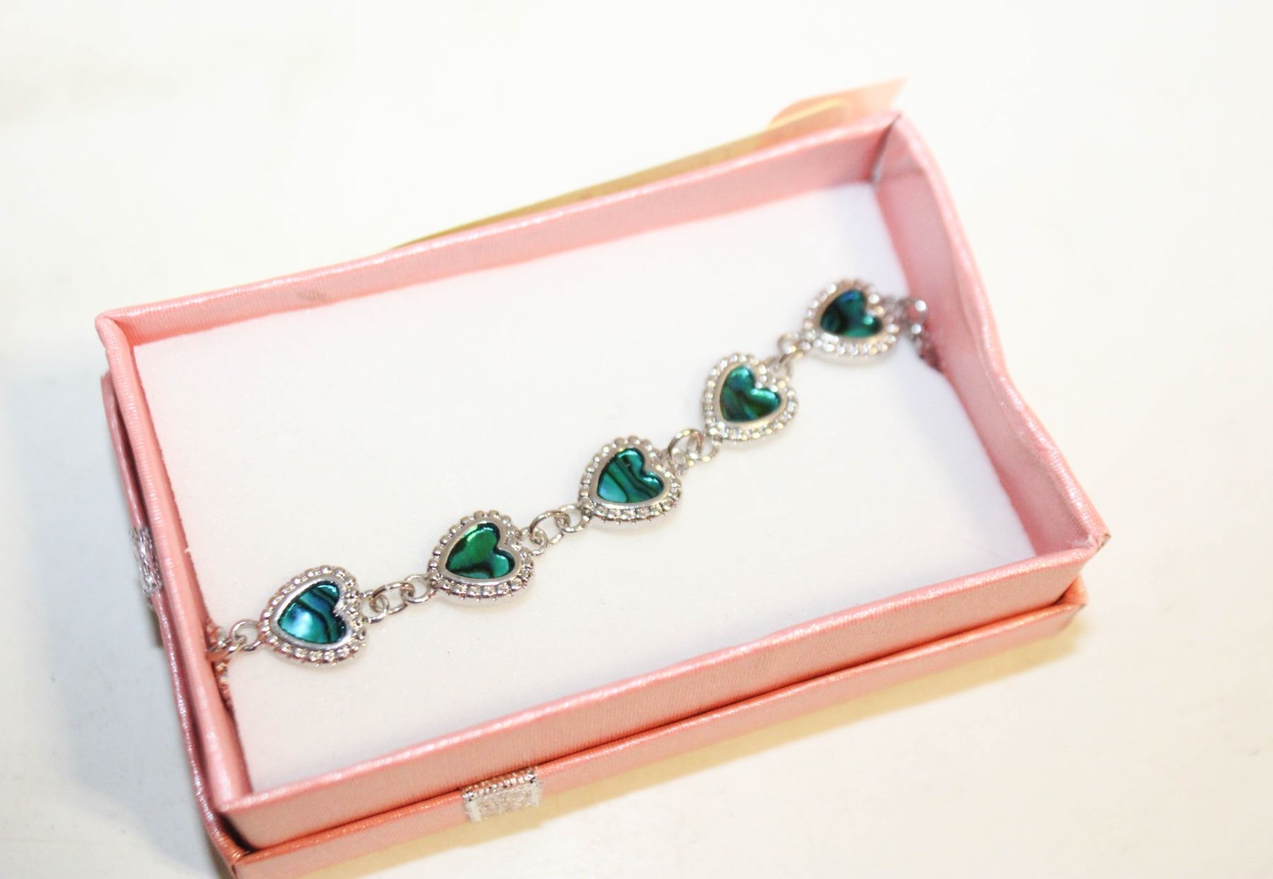 Lot 6872 NEW BRACELET INLAID ABALONE SHELL HEART SHAPE