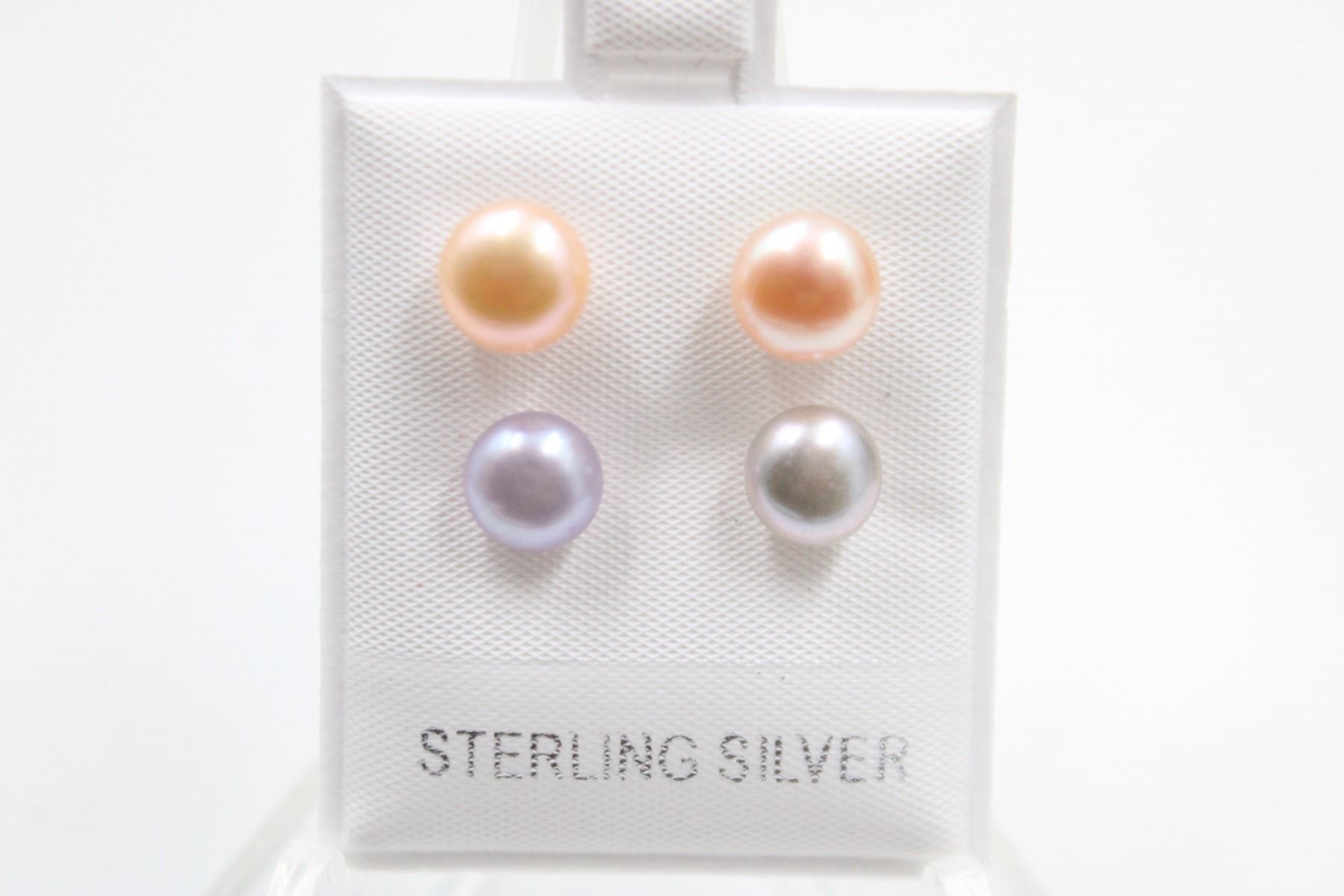 .925 STERLING SILVER/ 7.5-8MM /LAVENDER & PINK/2PAIRS
