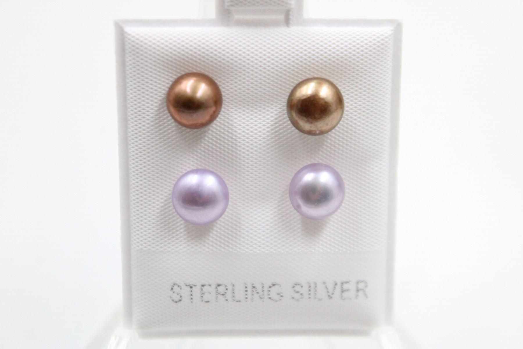 .925 STERLING SILVER/ 7.5-8MM /BROWN& LAVENDER /2PAIRS