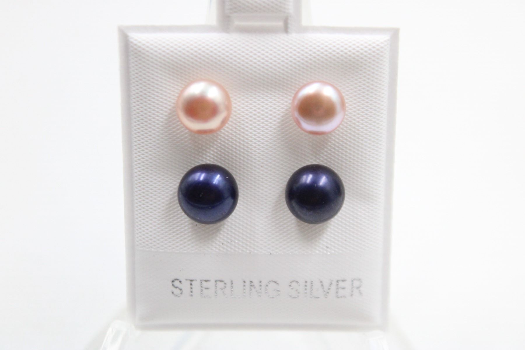 .925 STERLING SILVER/ 7.5-8MM /LAVENDER *& BLACK/2 PAIRS