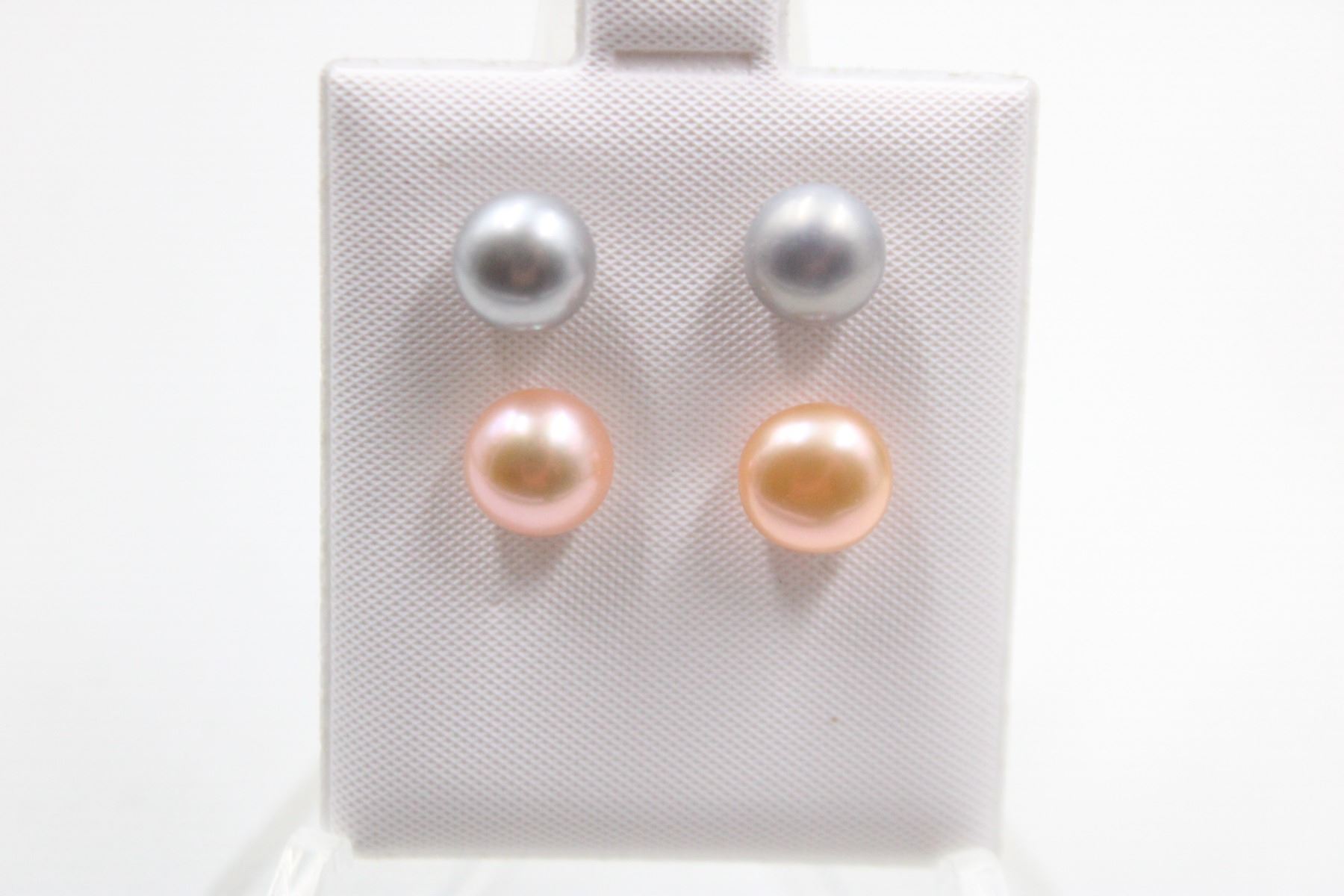 .925 STERLING SILVER/ 7.5-8MM /PINK & GRAY /2PAIRS