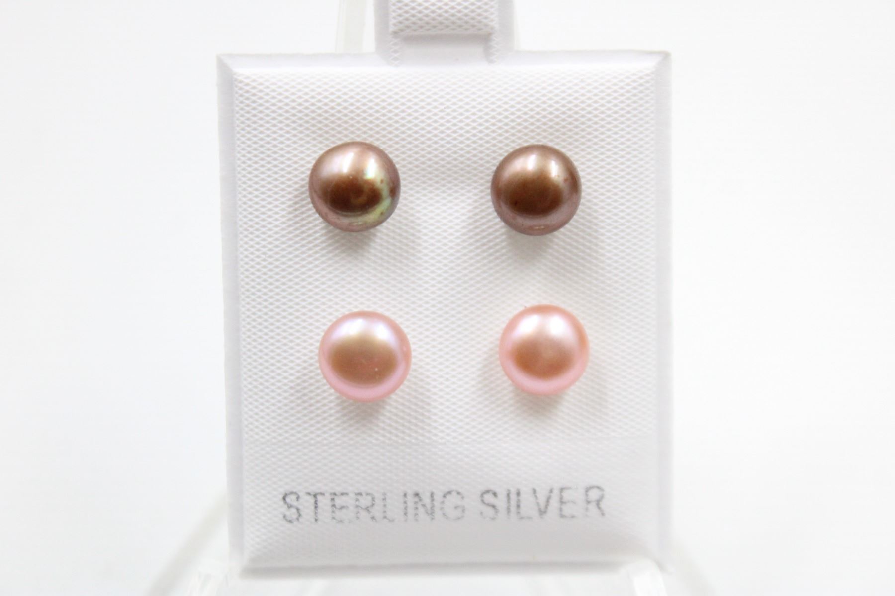 .925 STERLING SILVER/ 7.5-8MM /BROWN & LAVENDER PINKISH /2PAIRS