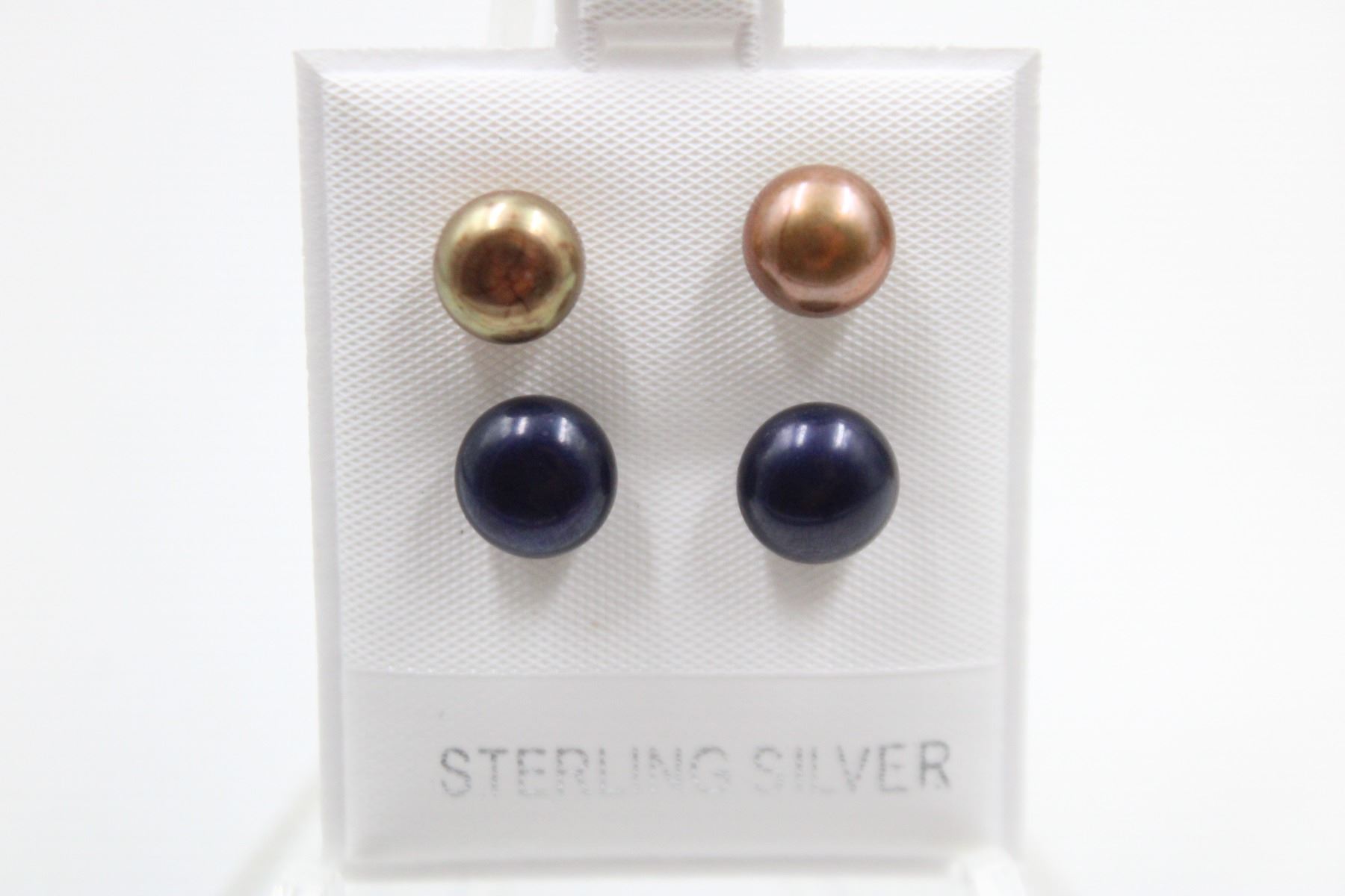 .925 STERLING SILVER/ 7.5-8MM /BOWN & BLACK /2PAIRS