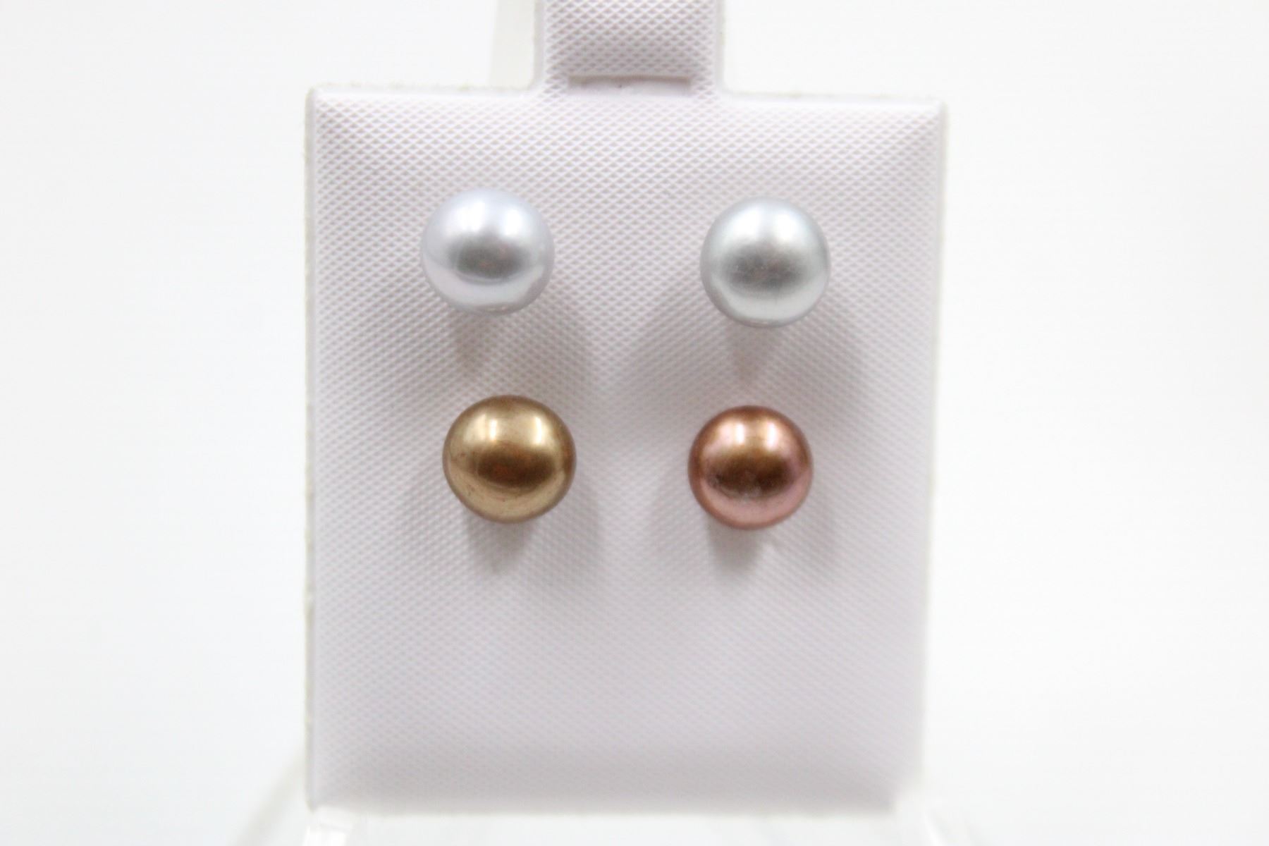 .925 STERLING SILVER/ 7.5-8MM /GRAY & BROWN /2 PAIRS