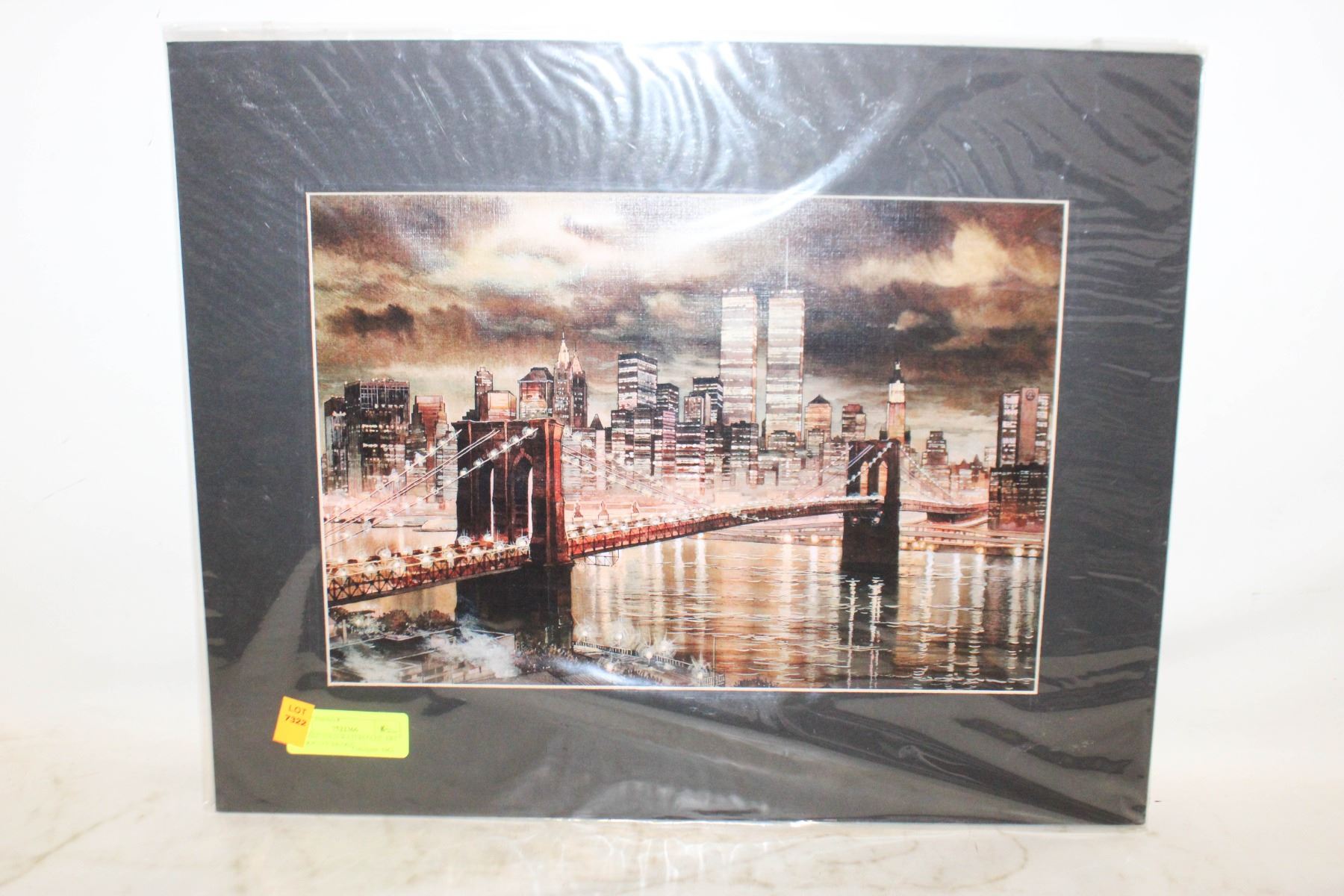 Lot 7322 VINTAGE 16X20 WATERCOLOR ART "BROOKLYN BRIDGE"