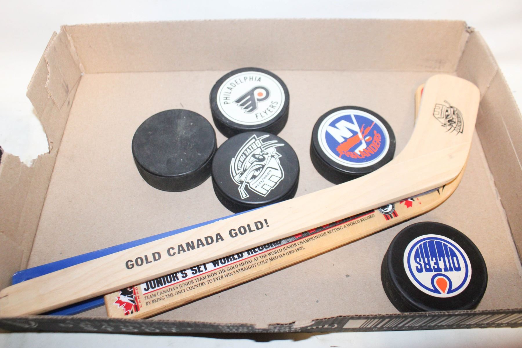 Lot 7337 VINTAGE NHL TEAM PUCKS AND COLLECTABLE MINI