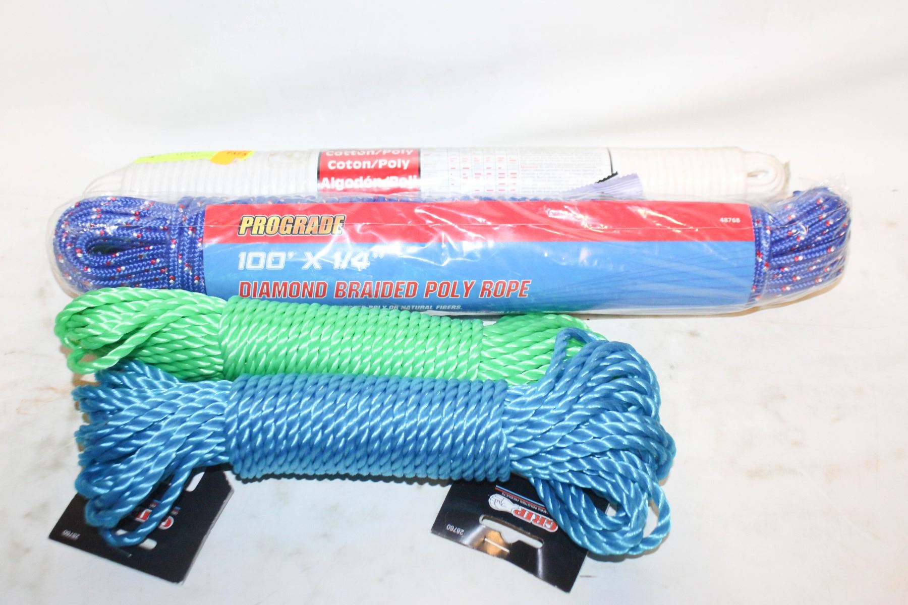 4 NEW PKGS OF ROPE INCLUDING DIAMOND BRADED