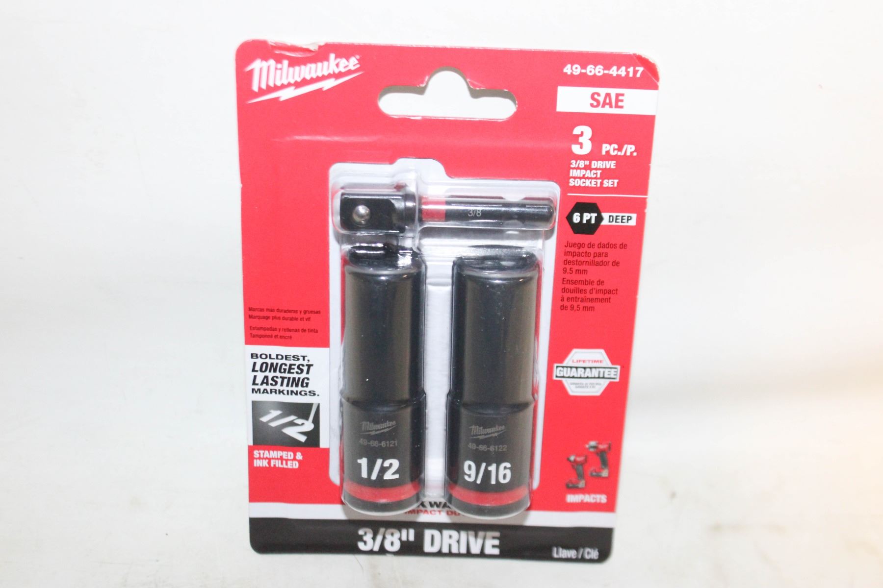 Lot 7405 PACK OF MILWAUKEE 3 PC 3/8” DRIVE IMPACT