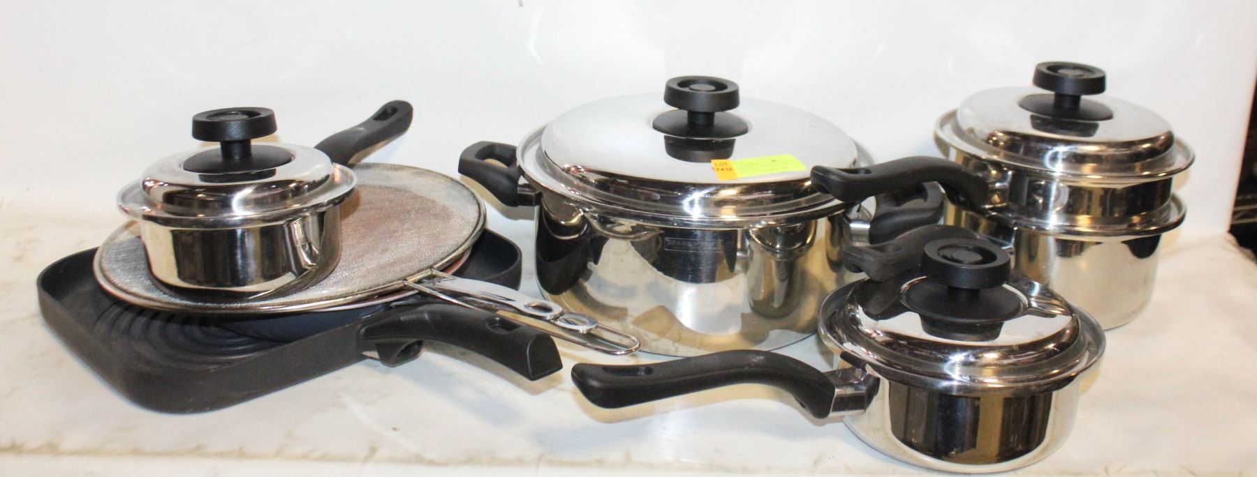 Lot 7432 HEAVY STAINLESS STEEL POTS AND PANS SET W/FRYING