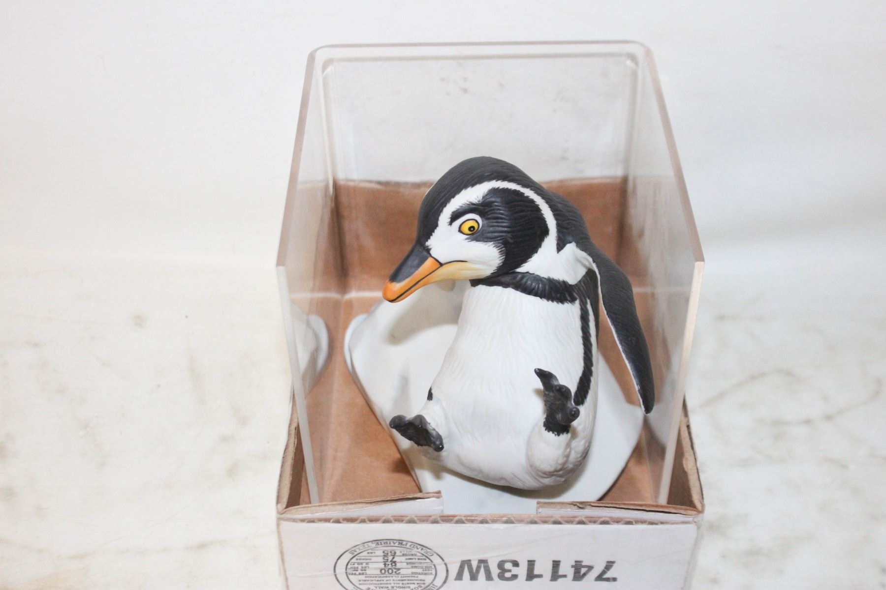 PORCELAIN 'WHOOPS' POOFIN SLIPPING ON ICE WITH CLEAR MANTEL STAND