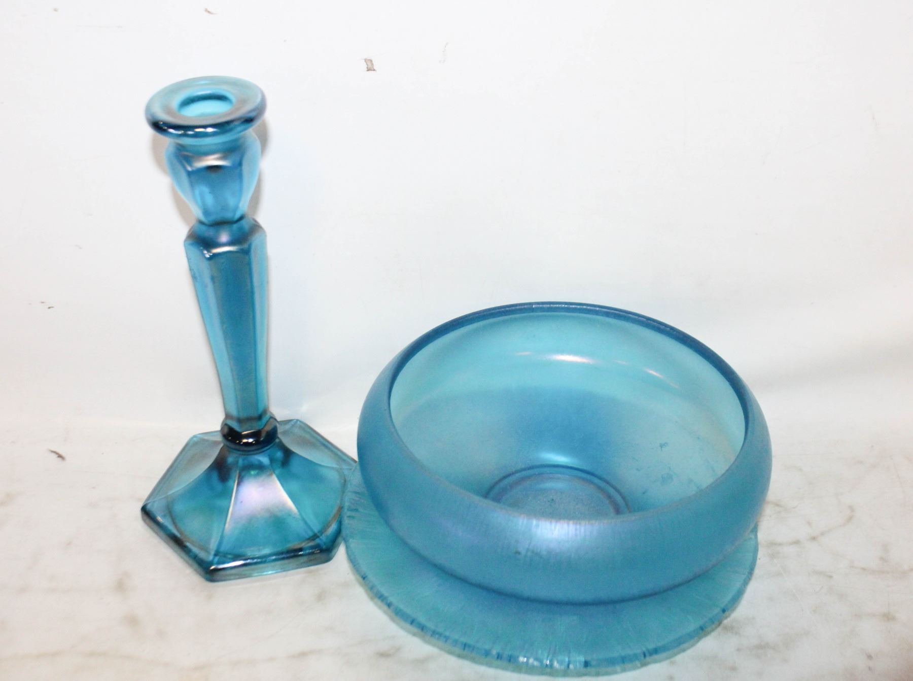 Lot 7650 FENTON BLUE STRETCH GLASS PLATE + BOWL CELESTIAL