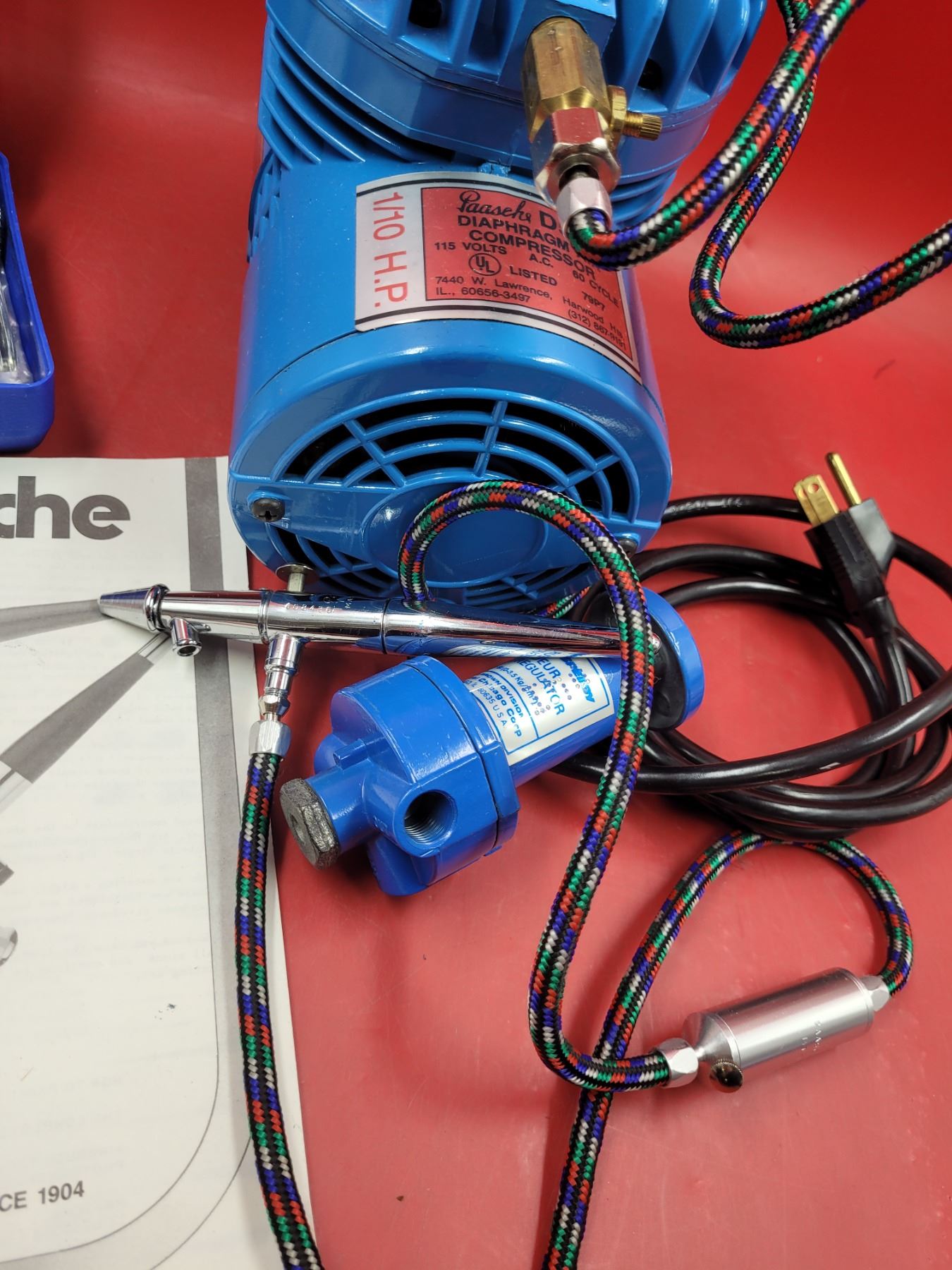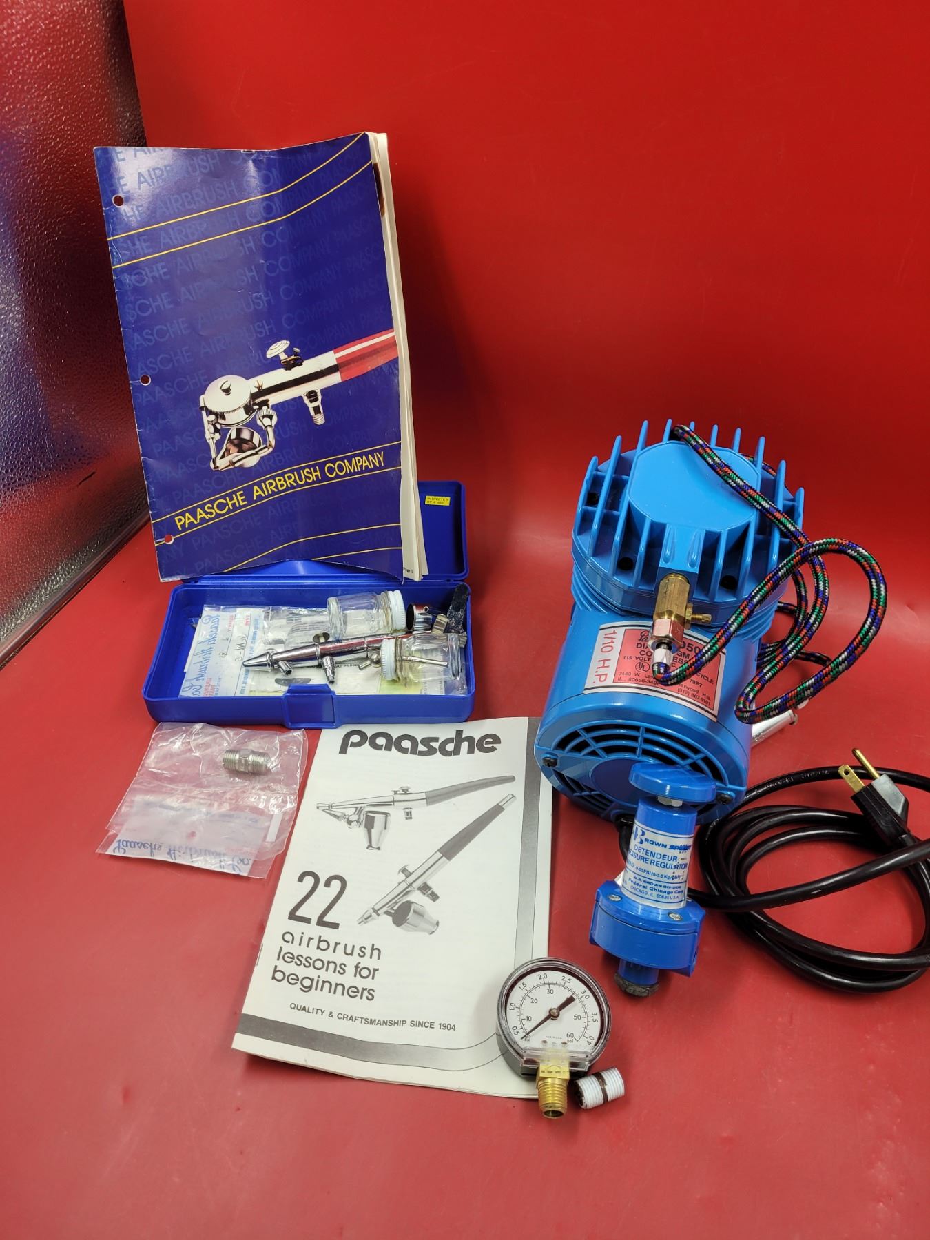 Paasche Airbrush Compressor, Pressure Regulator, & Lessons Booklet