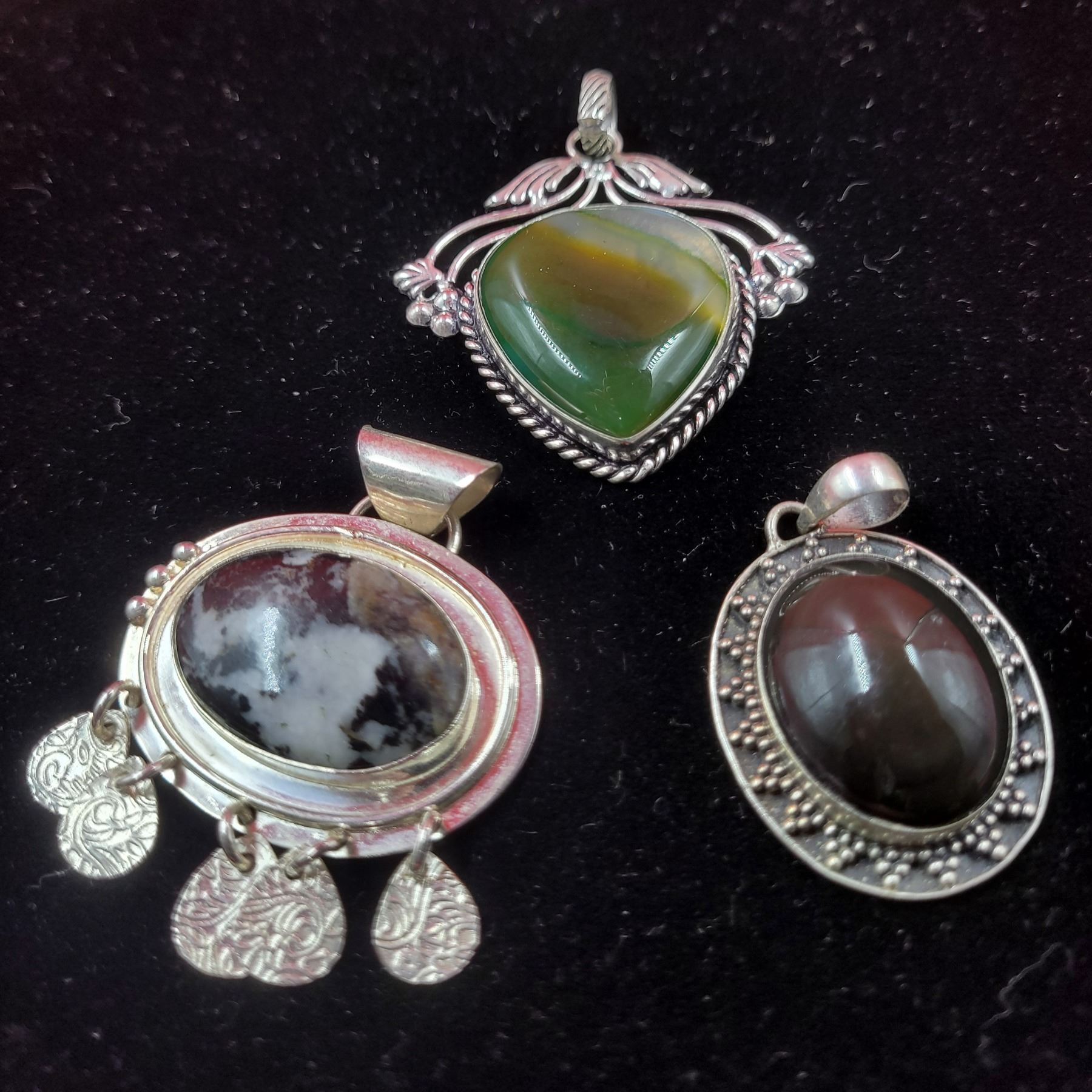 3 Stamped 925 Sterling Pendants (46.6 grams)