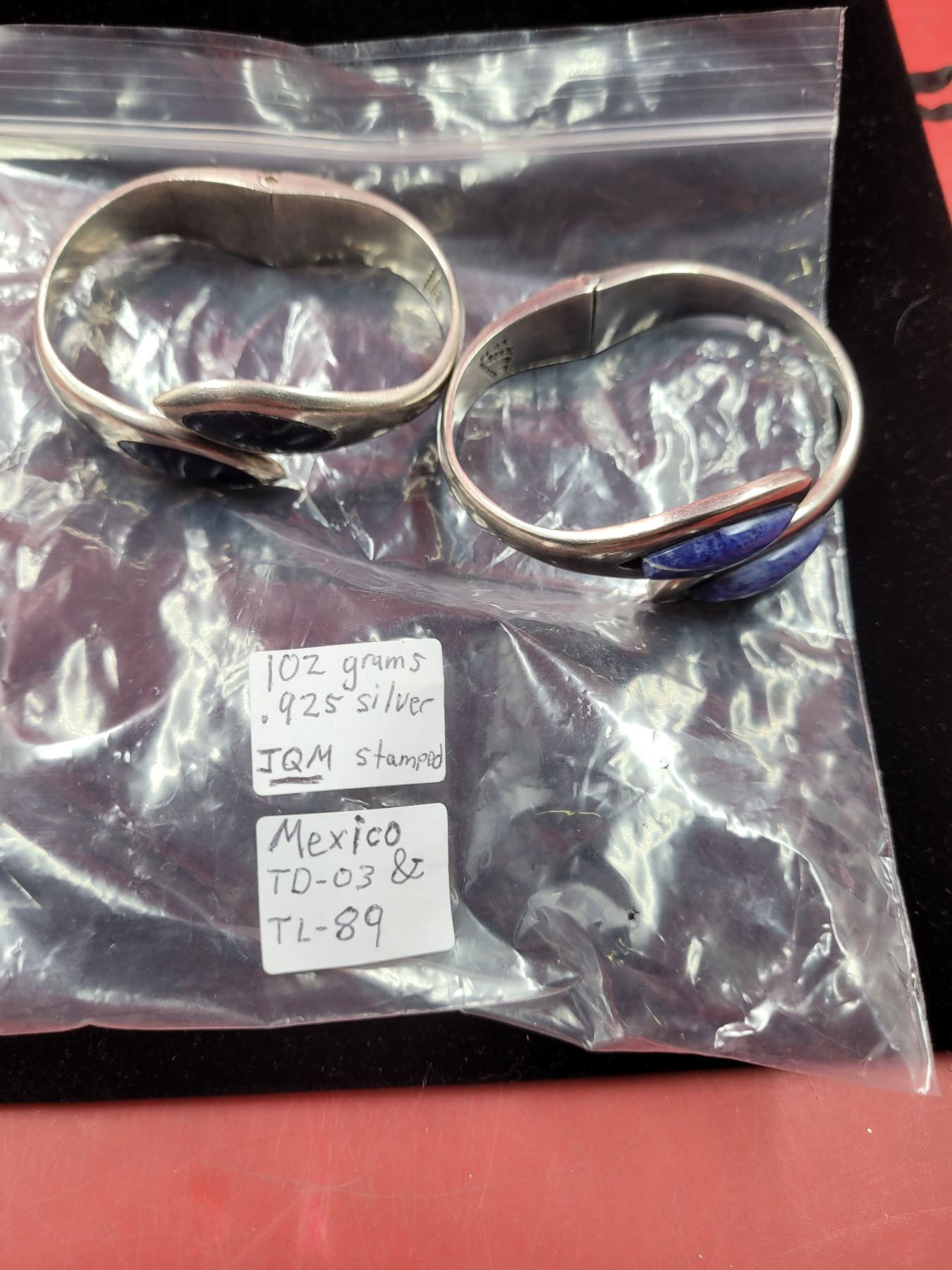 2 Stamped 925 Mexican Silver Bangle Bracelets (102 grams)