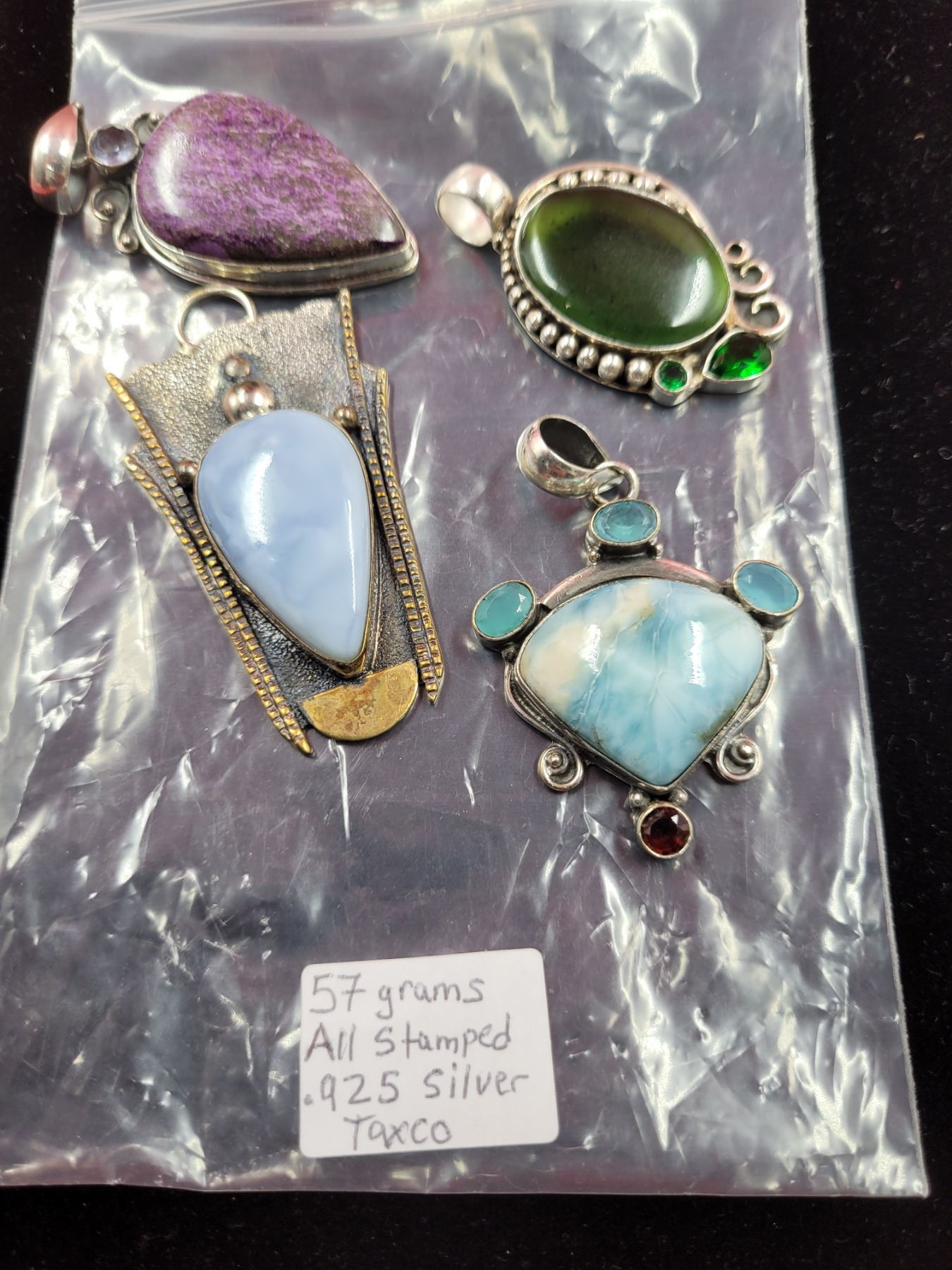 Lot 142 4 Stamped Taxco 925 Sterling Pendants (57 grams)