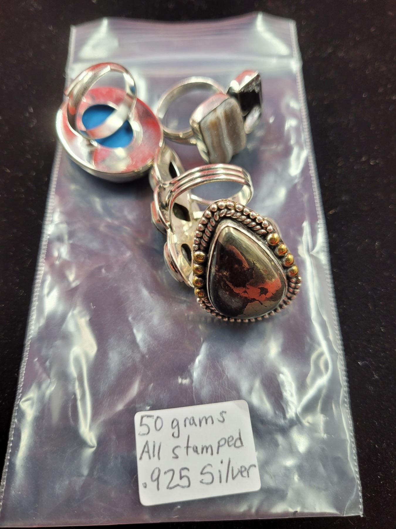 Lot 143 4 Stamped 925 Sterling Rings (50 grams)