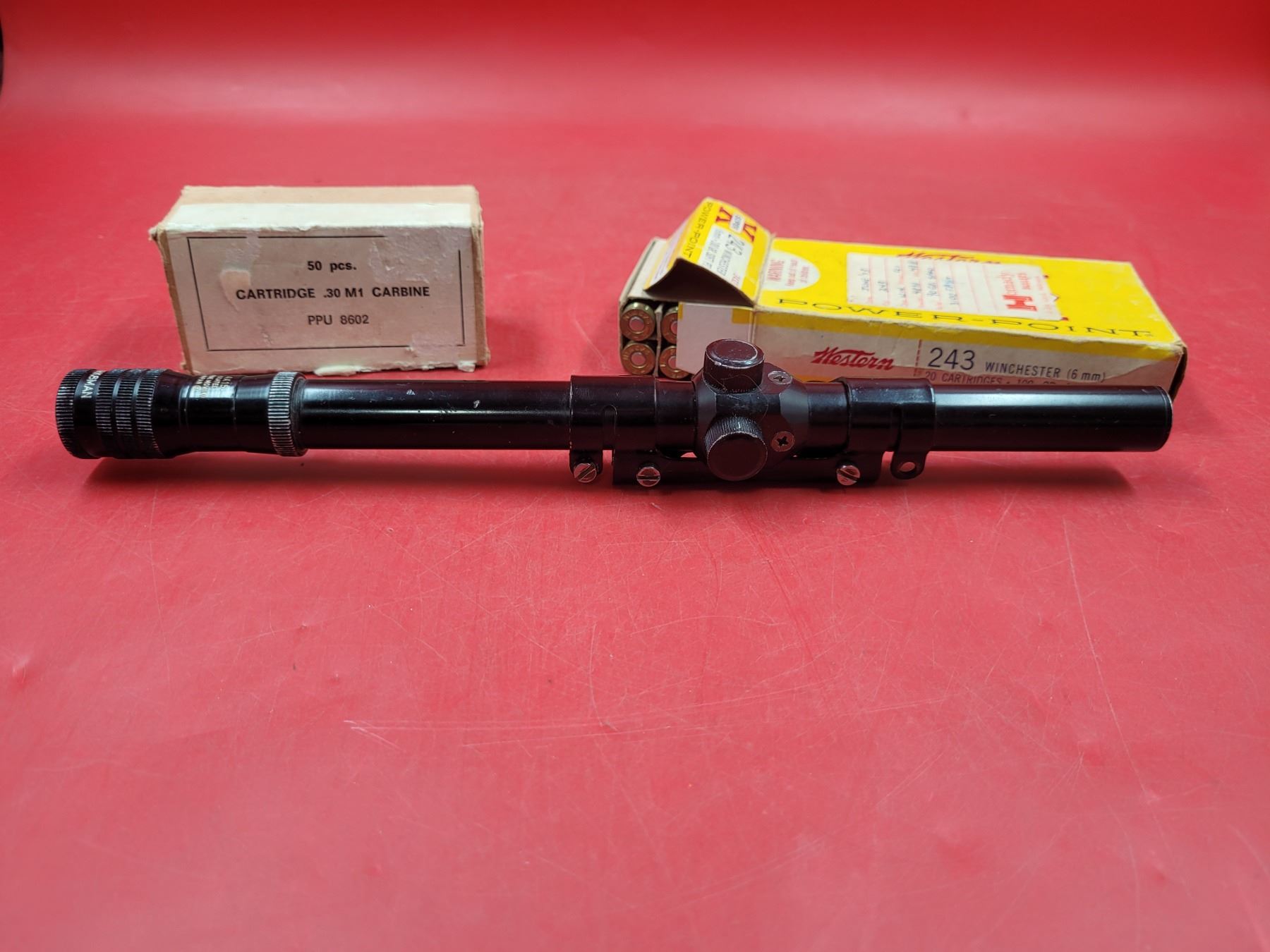 Lot 146 Marksman Scope Made in Japan, .30 M1 Carbine Ammunition, & 243 Winchester Ammunition