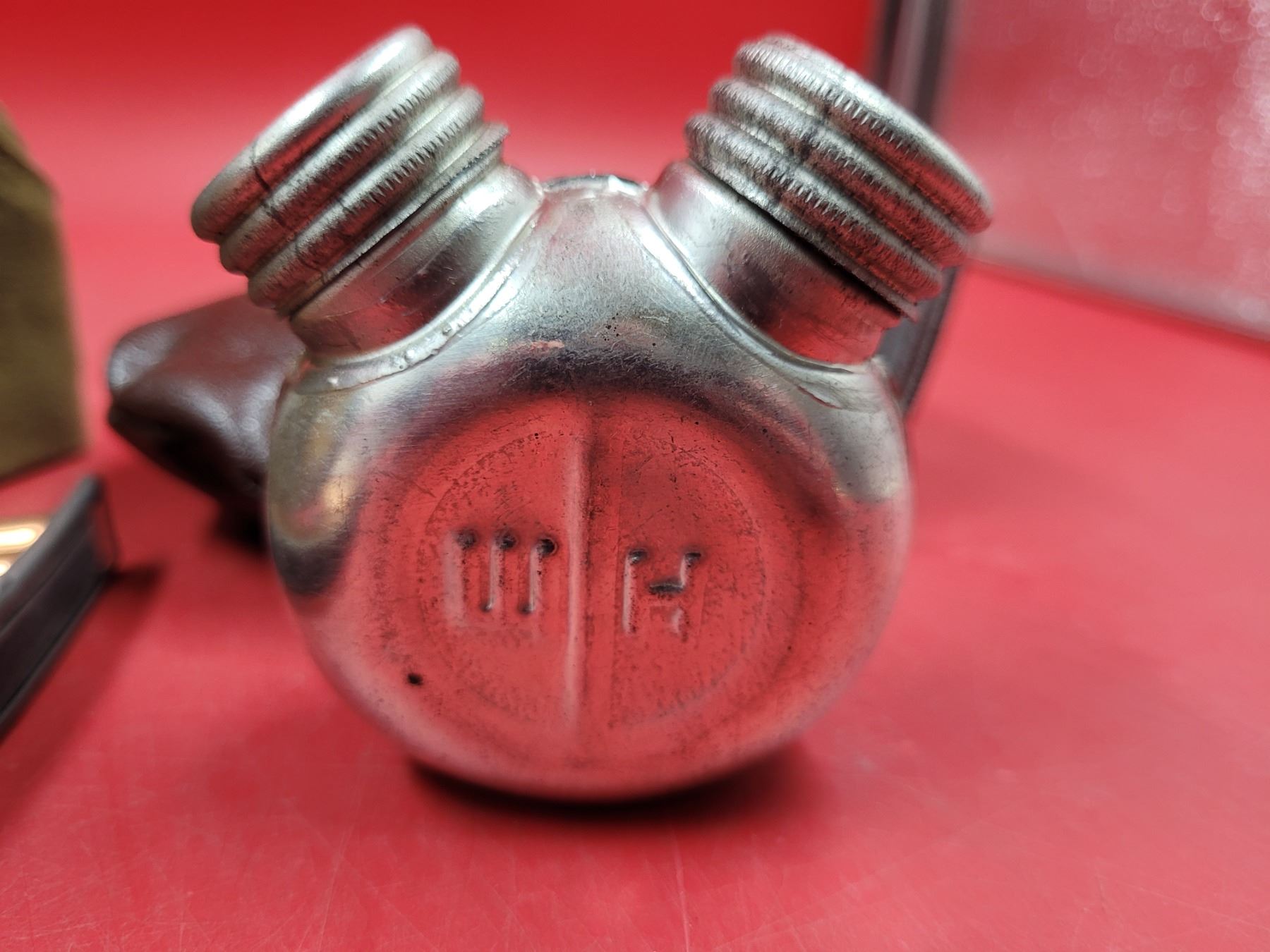 Lot 147 Soviet Union Military Cap, Soviet Double-Compartment Oiler Bottle, & Stripper Clips