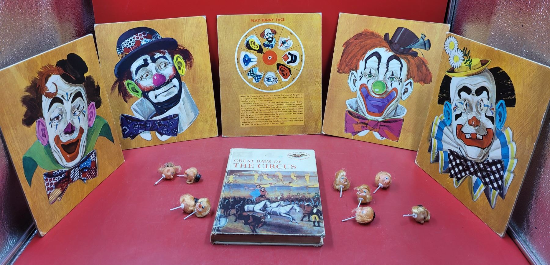 Funny Clown Face Game Pieces & Great Days of The Circus Book