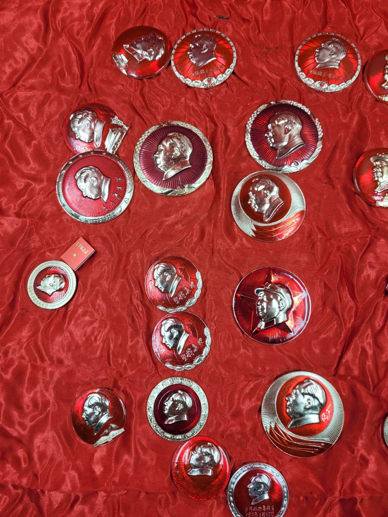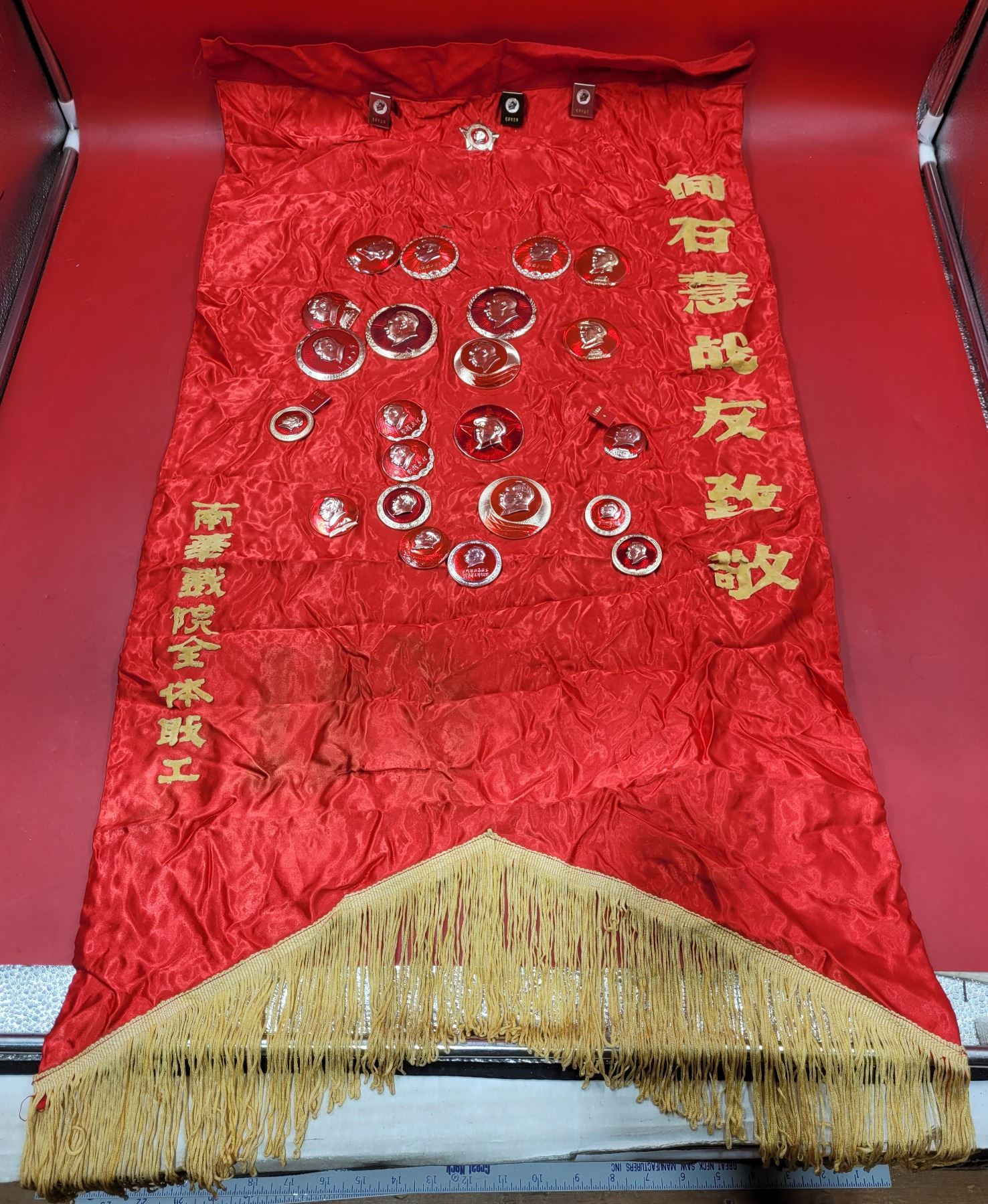 Lot 216 Chinese Wall Tapestry & Chairman Mao Badges