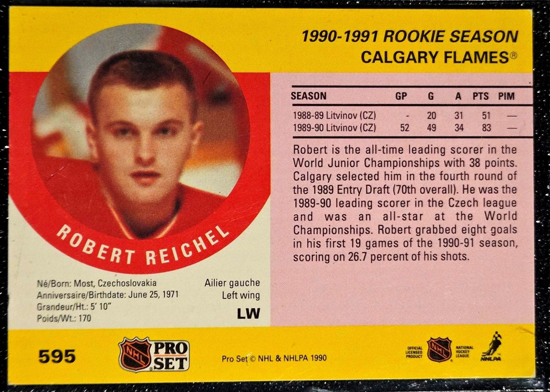 Lot 194 Robert Reichel 1990-91 NHL Pro Set "Rookie Season" #595 Hockey Card