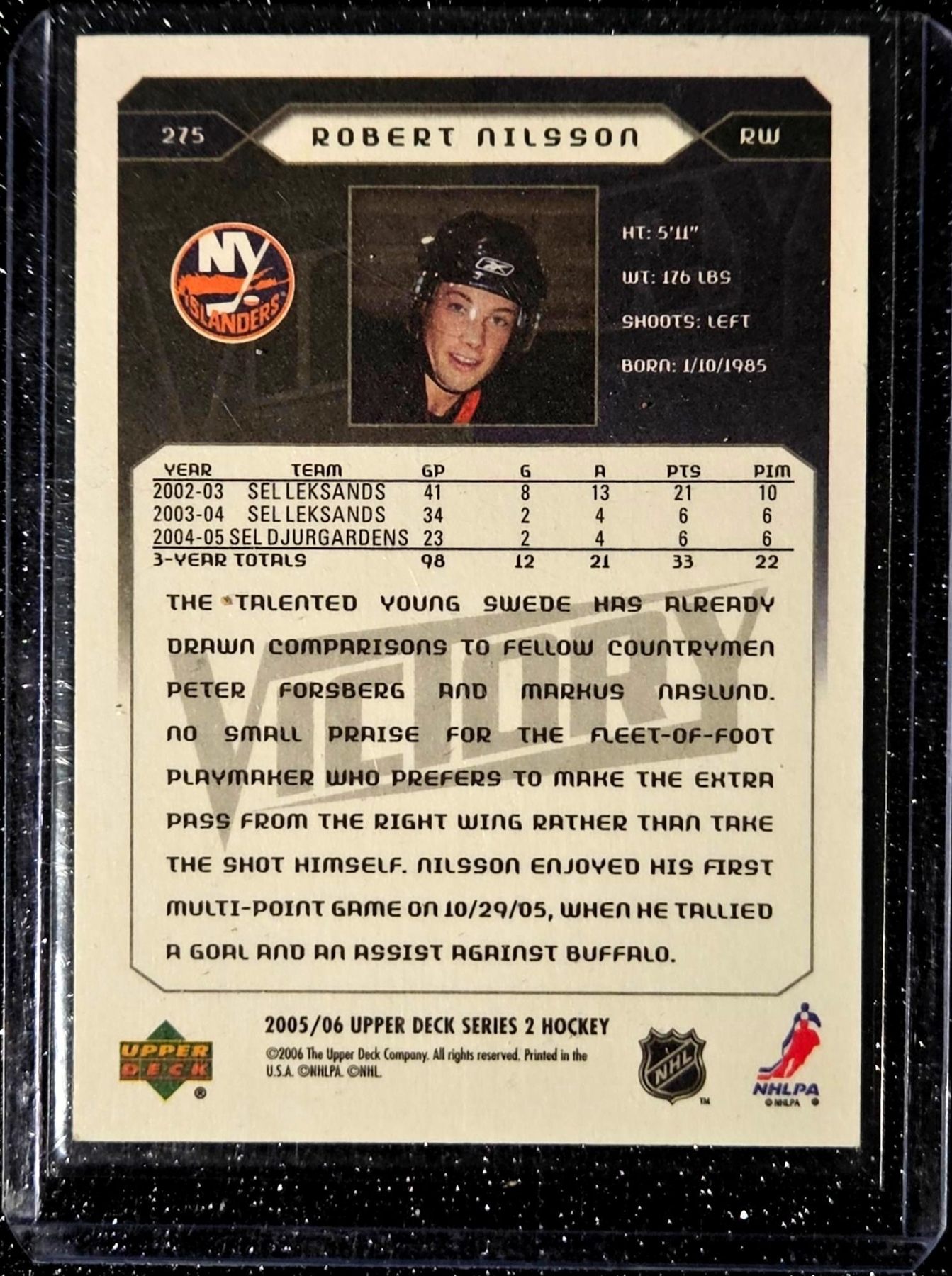 Lot 197 Robert Nilsson 2005-06 Upper Deck "Victory Rookie" #275 Hockey Card
