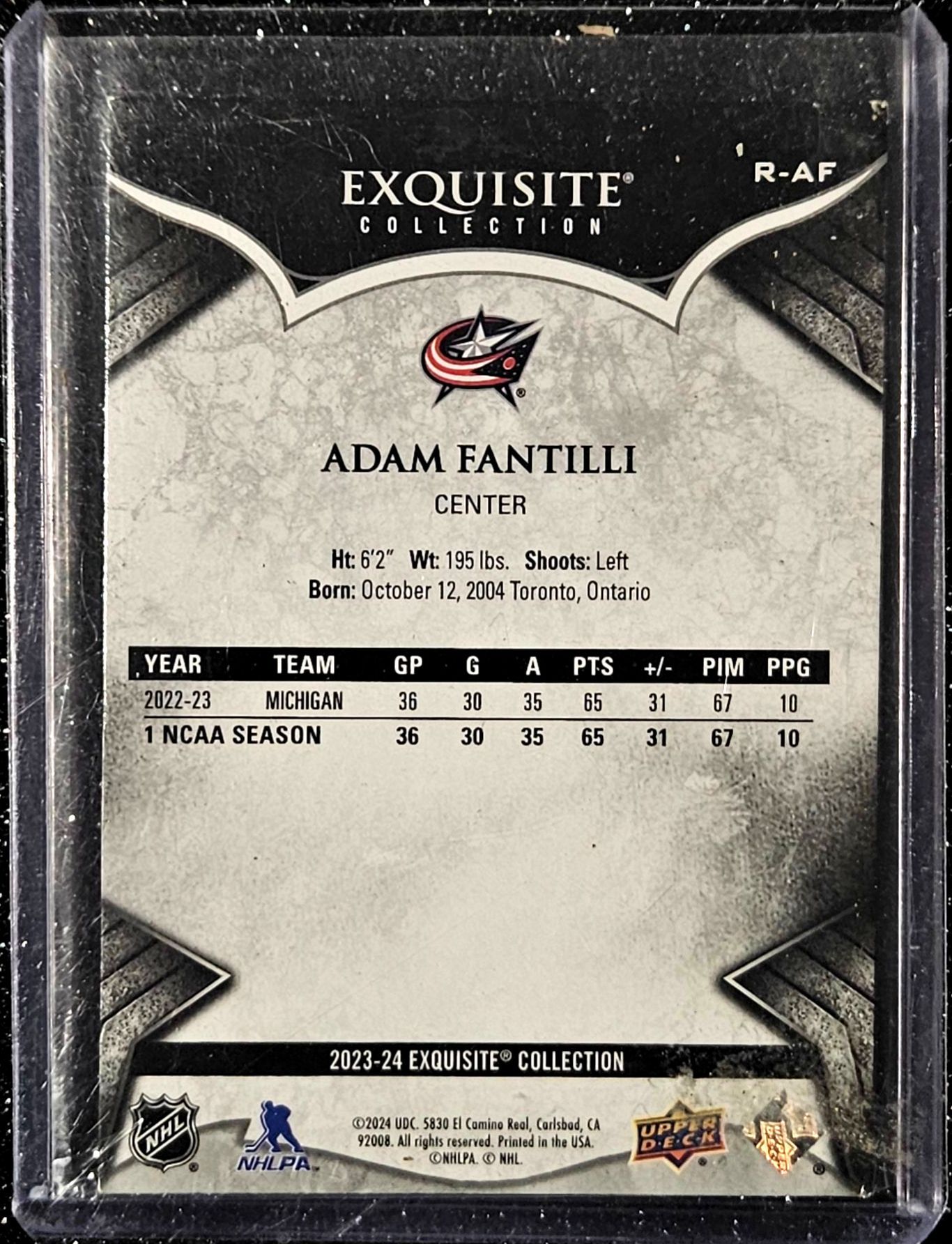 Lot 203 Adam Fantilli 2023-24 Upper Deck "Black Diamond Exquisite Collection" Rookie Hockey Card
